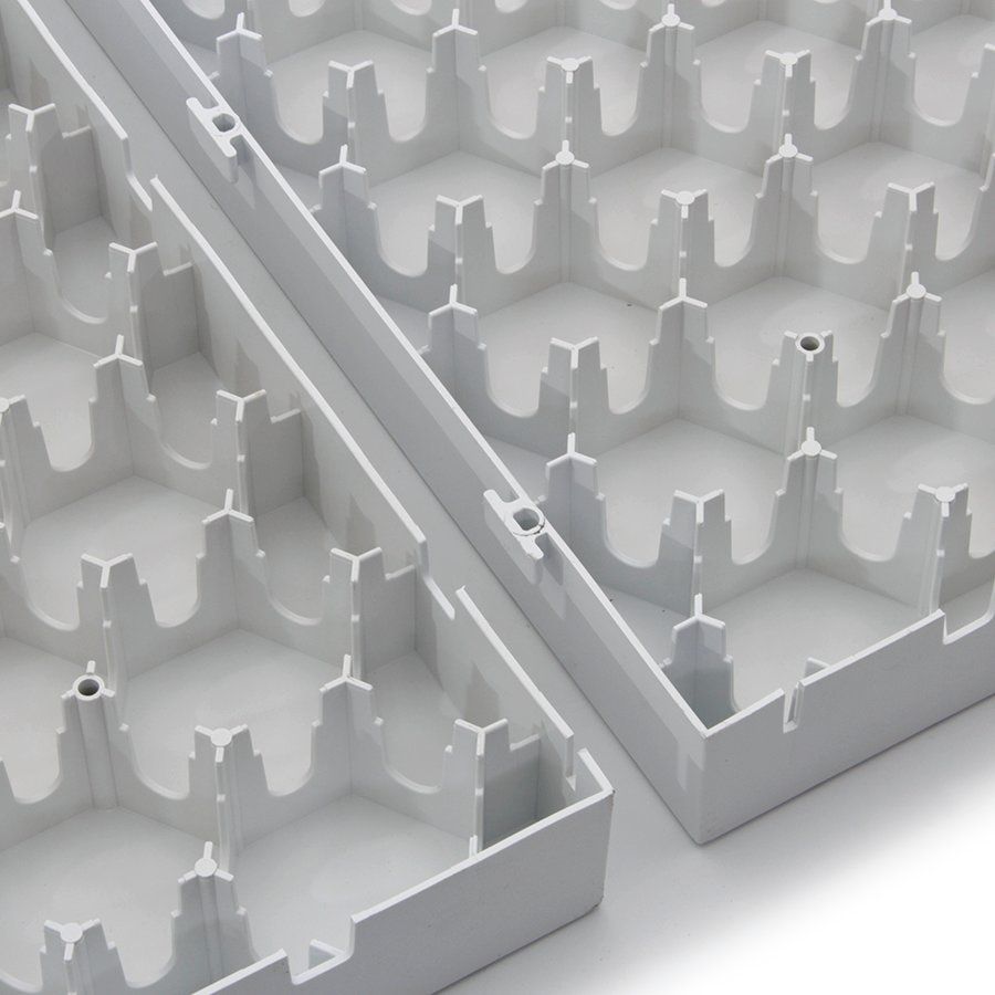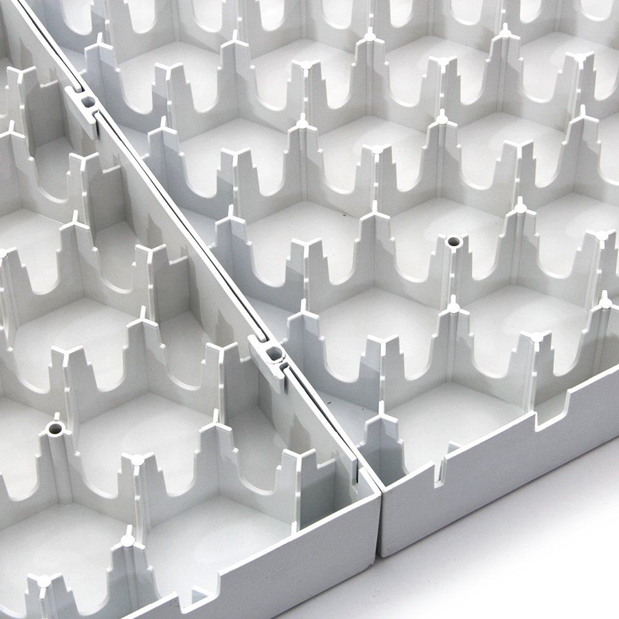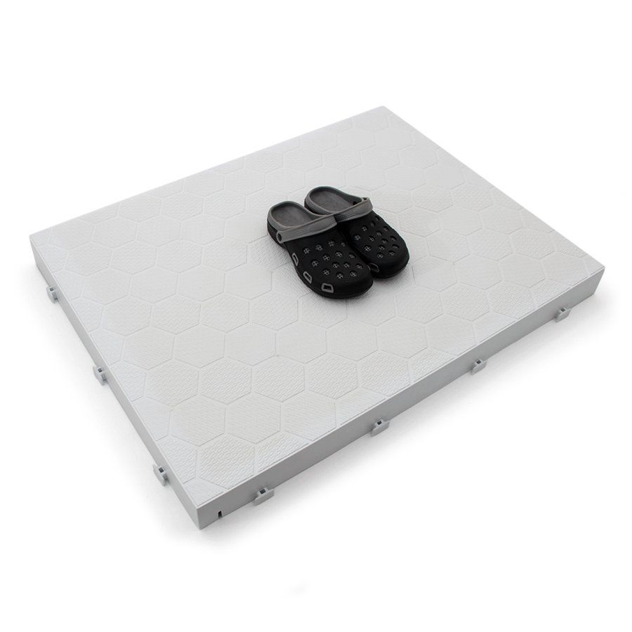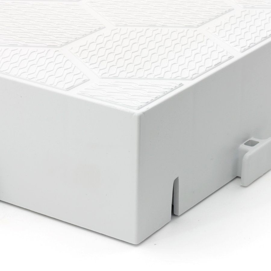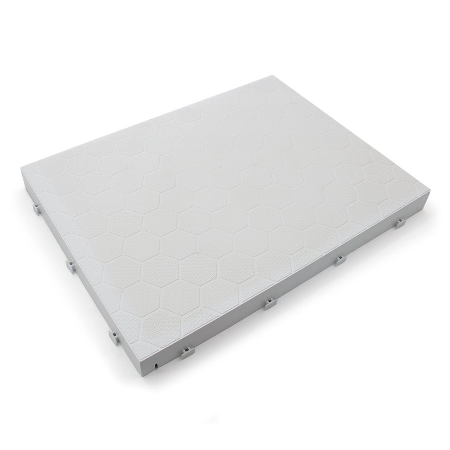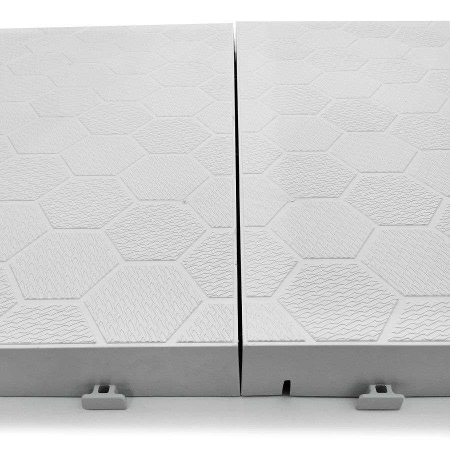 Protiskluzný povrch dlaždice je zakončen dezénem, který vytváří světlý / tmavý optický efekt. Základní rám má voštinový tvar (tvar plástve), který poskytuje vysoký odpor v kroucení a ohybu. Boky šestihranných žeber ve spodní části dlaždice mají otvory, které umožňují odvodnění a průchod všech kabelů. Patky mohou být také spojeny střídavě.