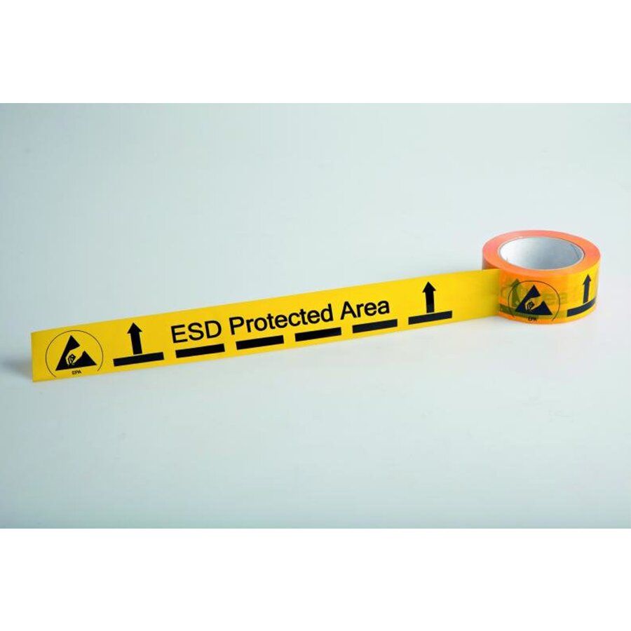 ESD páska „ESD Protected Area“ slouží k přesnému vymezení a ohraničení EPA (Electrostatic Protected Area) prostor, zejména pokud se jedná pouze o část místnosti nebo haly a nestačí umístit výstražné návěstí pouze u vchodu. páska pomáhá zajistit bezpečné a kontrolované prostředí pro práci s citlivými elektronickými součástkami.
