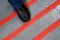 Červená korundová protiskluzová páska FLOMA Standard - 18,3 x 2,5 cm tloušťka 0,7 mm