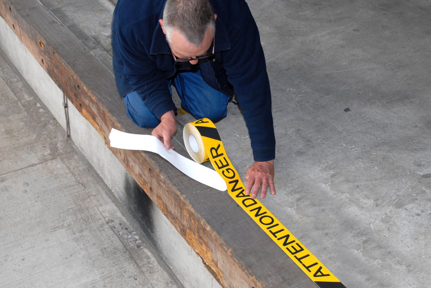 Bezpečnostní protiskluzová páska s vysoce kontrastním šikmým pruhováním se střídající se černou a žlutou barvou, ve středu pásky pak potiskem. Horní povrch pásky je potažen korundem. Páska je testována a převyšuje požadavky německých norem DIN, EU / Australian Pendulum a amerických norem ASTM. Protiskluzový povrch zajišťuje jistou úroveň přilnavosti v každé situaci, jelikož se neucpává špínou, prachem ani jinými nečistotami. Pásku lze nanést téměř na jakýkoli povrch v interiérech i exteriérech. Pokud je dodržen správný postup nanesení pásky na připravený povrch, bude mít páska dlouhou životnost, správnou tuhost i odolnost vůči vnějším podmínkám včetně styku s chemikáliemi.