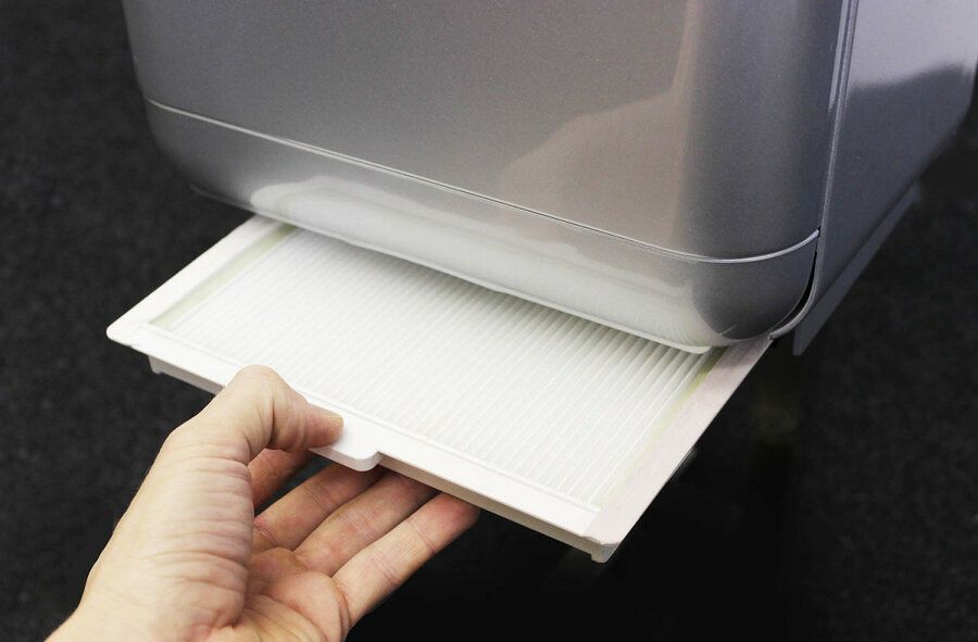 Filtr lze čistit lehkým poklepem, vysavačem nebo jemným kartáčem. Pozor: filtr neproplachujte vodou!