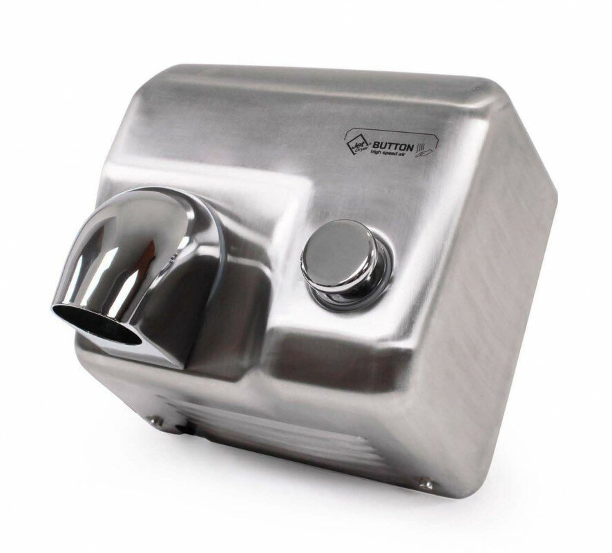 Šedý nerezový horkovzdušný vysoušeč rukou Jet Dryer BUTTON