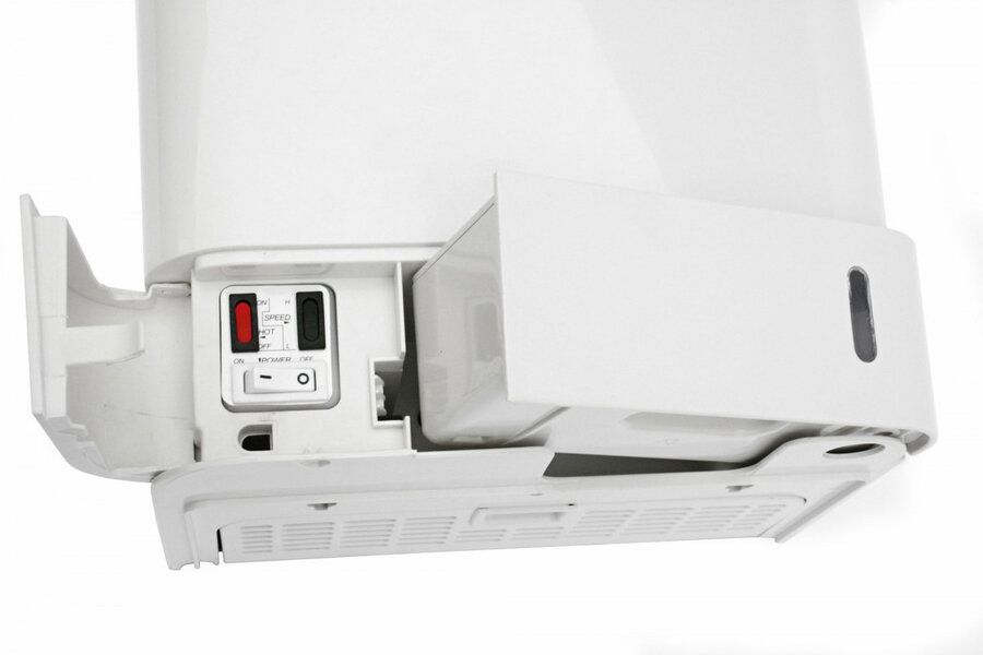 Při vsunutí a během pozvolného vysouvání rukou z vysoušeče je voda okamžitě doslova stírána vysokým tlakem teplého vzduchu na odkapovou plochu. Proudění vzduchu zajišťují hřebenové trysky umístěné po obou stranách sušícího prostoru. Odkapaná voda pak kanálkem stéká do odkapávací nádobky na spodní straně přístroje.