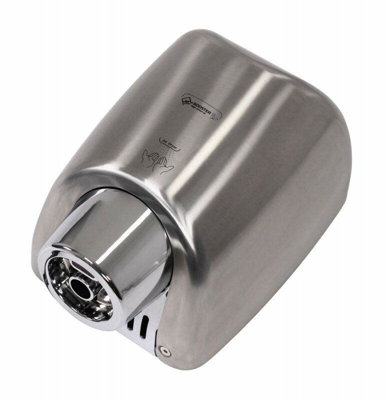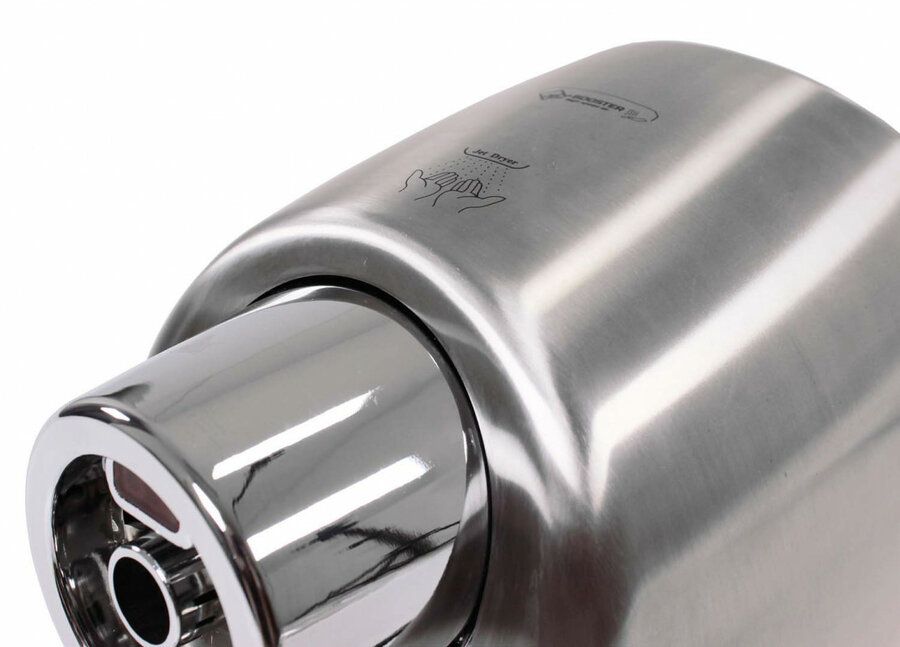 Osoušeč rukou BOOSTER se od jiných osoušečů vyznačuje výraznou pochromovanou tryskou kruhového tvaru. Díky silnému 550 W motoru je vysušení rukou velmi rychlé.