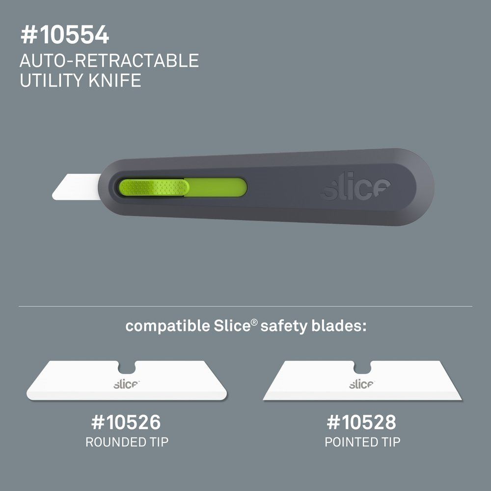 Samozatahovací univerzální nůž Slice 10554 reaguje na poptávku zákazníků po dlouhém ostří na řezání tlustých a tuhých materiálů. Po dokončení řezu se pro bezpečnost uživatele čepel, tohoto keramické bezpečnostní nože, stáhne zpět. Tento řezací nástroj je především přizpůsoben k průmyslovému použití s jedním cílem: udělat řezání bezpečnější tak, aby to nebylo na úkor efektivity nástrojů.