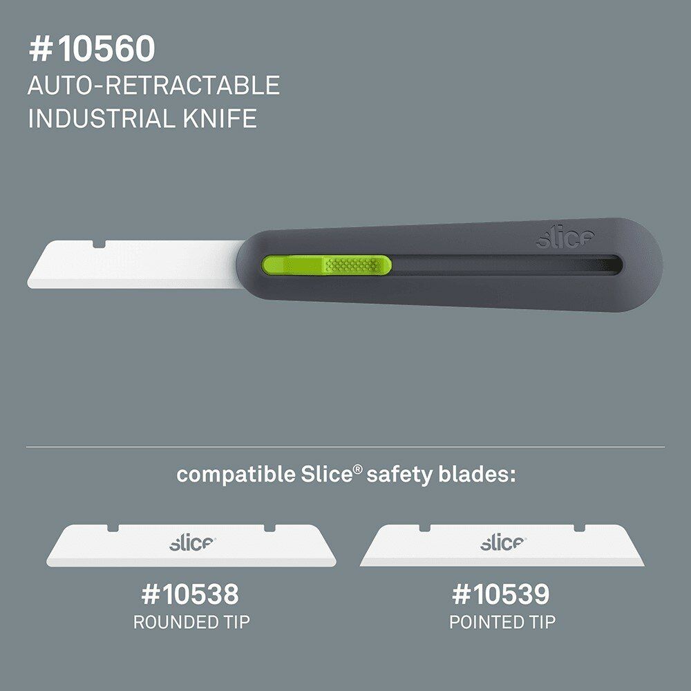 Samozatahovací průmyslový univerzální nůž Slice 10560 reaguje na poptávku zákazníků po dlouhém ostří na silné pěny v průmyslovém prostředí. Odkrytá čepel je 7,5 centimetrů dlouhá, což umožňuje uživateli řezat silnější materiály. Po dokončení řezu se pro bezpečnost uživatele čepel, tohoto keramické bezpečnostní nože, stáhne zpět. Tento řezací nástroj je především přizpůsoben k průmyslovému použití s jedním cílem: udělat řezání bezpečnější tak, aby to nebylo na úkor efektivity nástrojů.