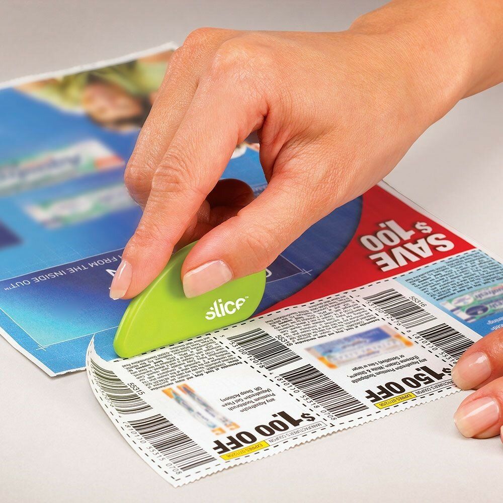 Informace o zboží Zelený plastový malý bezpečnostní univerzální nůž SLICE - délka 6,1 cm, šířka 3,1 cm, výšk