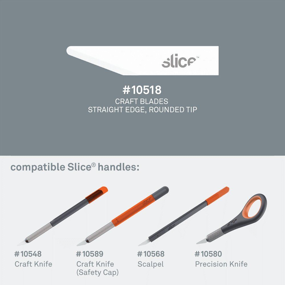 Tyto čepele jsou kompatibilní s noži Slice 10548, 10568, 10580, 10589. Zaoblená špička poskytuje zvýšenou ochranu před zraněním.