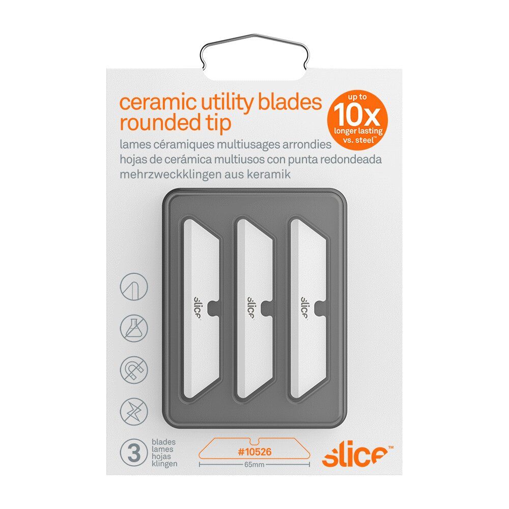Náhradní čepele SKU 10526 jsou vyrobeny ze 100% oxidu zirkoničitého, což je moderní keramický materiál, který kombinuje řadu užitečných funkcí, které ho odlišují od typických ocelových čepelí. Oxid zirkoničitý je nejiskřivý, nevodivý, nemagnetický, chemicky inertní, nekoroduje a nepotřebuje mazat olejem. Zaoblená špička poskytuje zvýšenou ochranu před zraněním. Až budete potřebovat novou hranu, jednoduše oboustrannou čepel otočte.