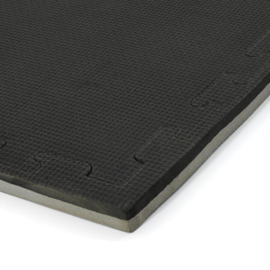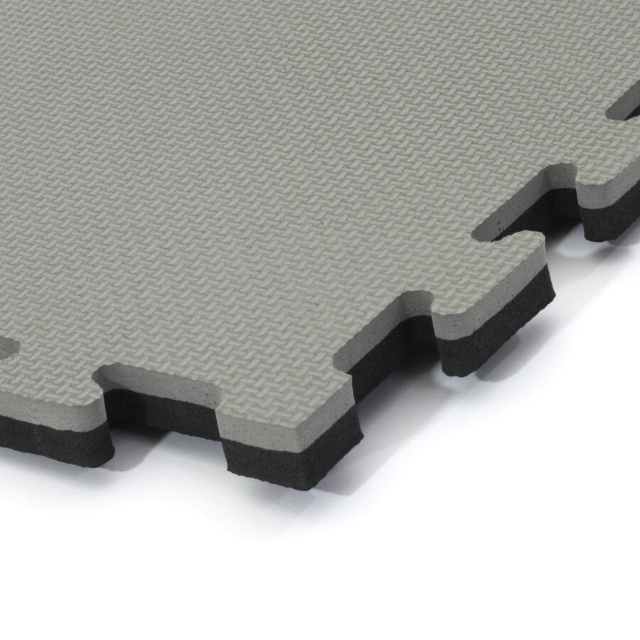 Černo-šedá modulární pěnová podložka Tatami je oboustranná podložka tvaru puzzle, přičemž jednotlivé díly do sebe přesně zapadají. Výhodou Tatami podložky je protiskluzová pěna a měkký dotek. Lze ji využít pro všechny druhy sportů, kde se cvičí naboso.