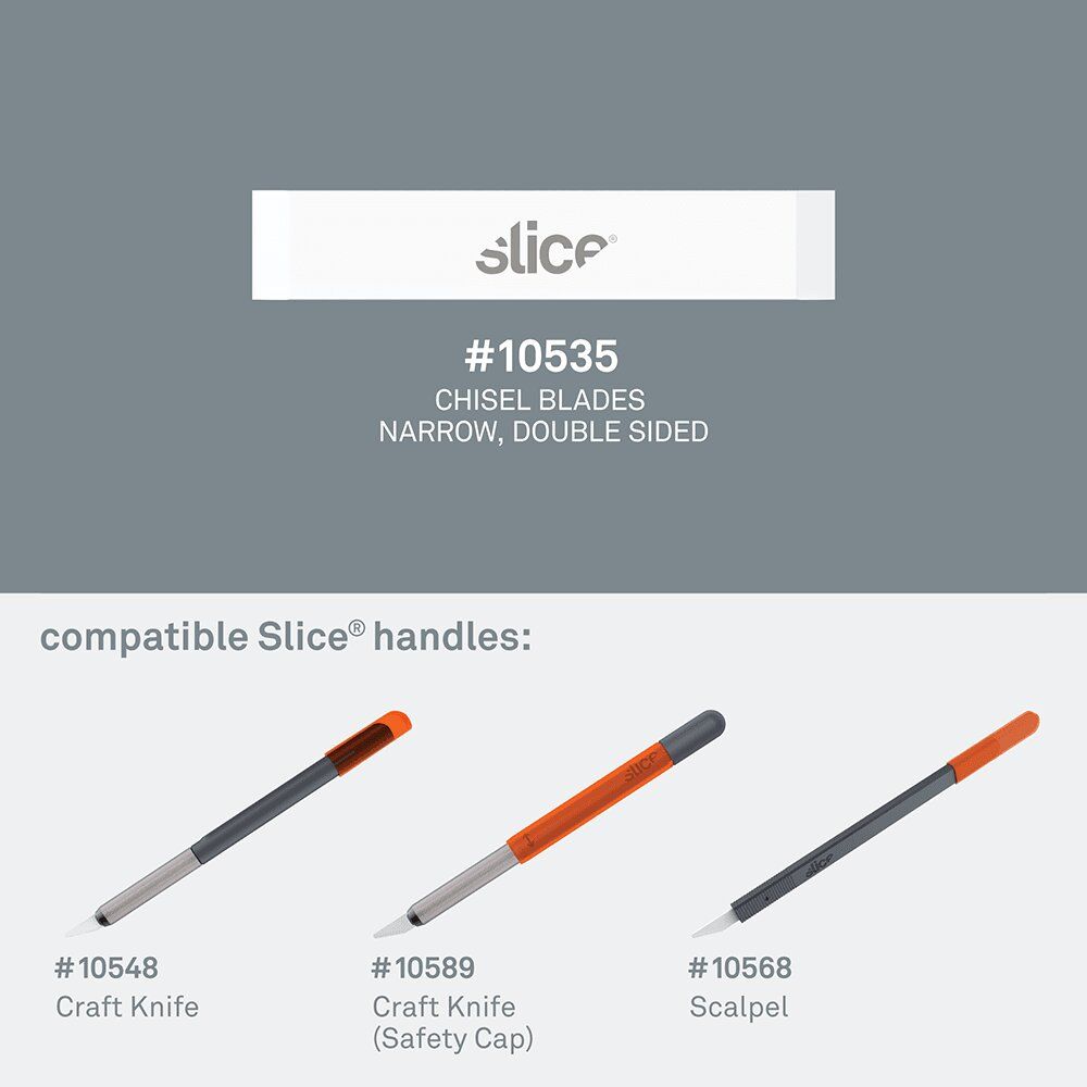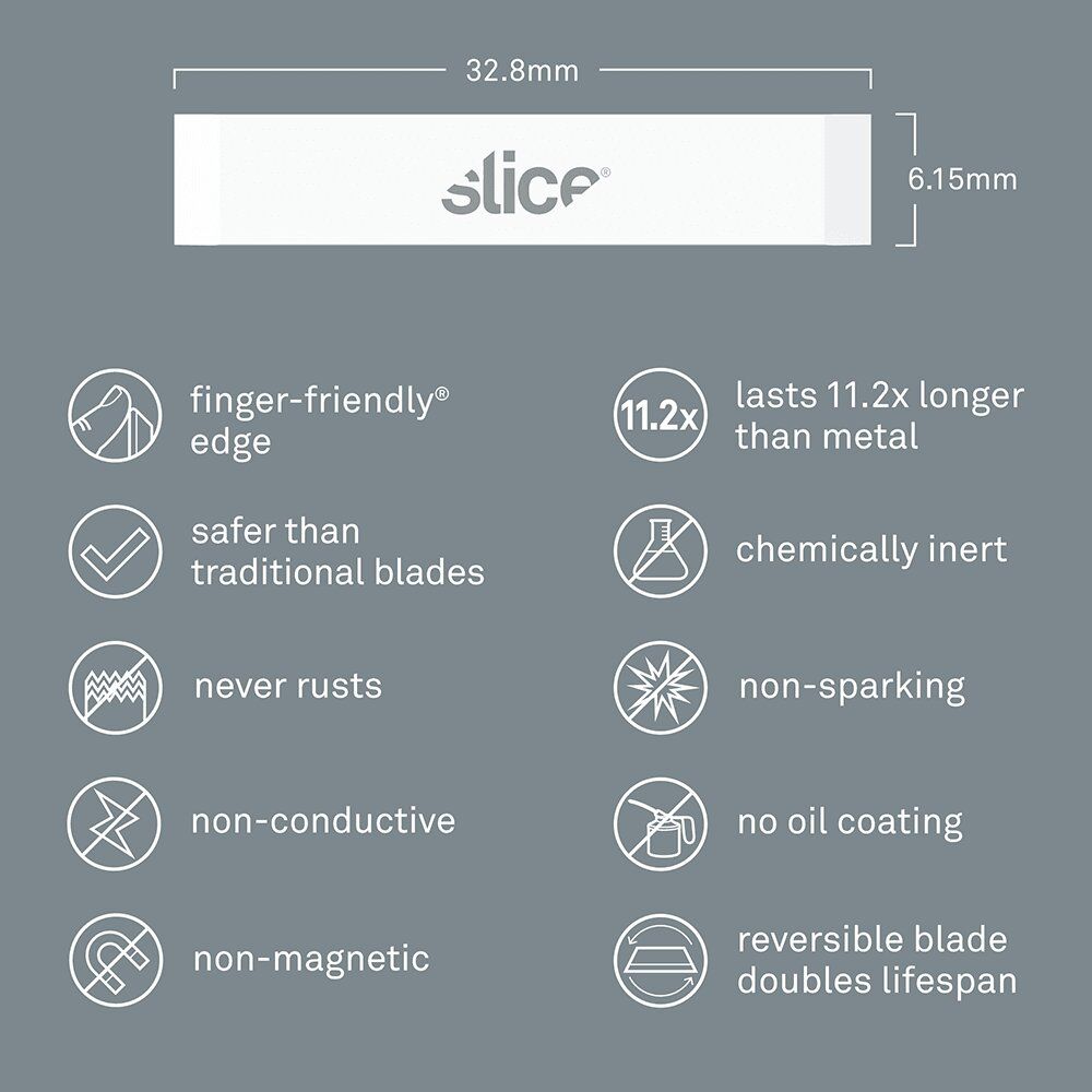 - bezpečnostní čepele Slice jsou chemicky netečné, nemagnetické, nevodivé, nejiskřivé, nerezavějící