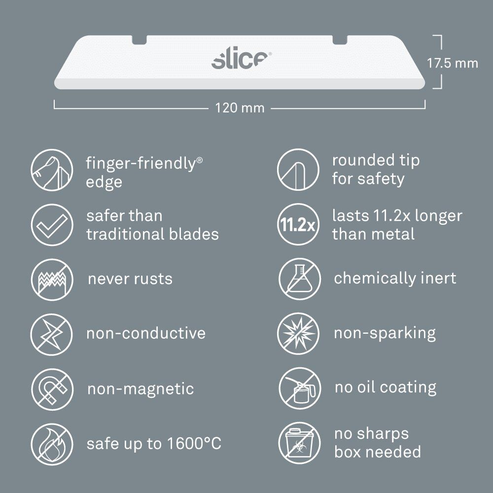 - bezpečnostní čepele Slice jsou chemicky netečné, nemagnetické, nevodivé, nejiskřivé, nerezavějící