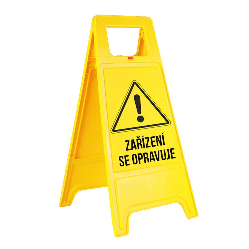 Žlutý PVC výstražný stojan Pozor! Zařízení se opravuje - 30 x 61,5 cm