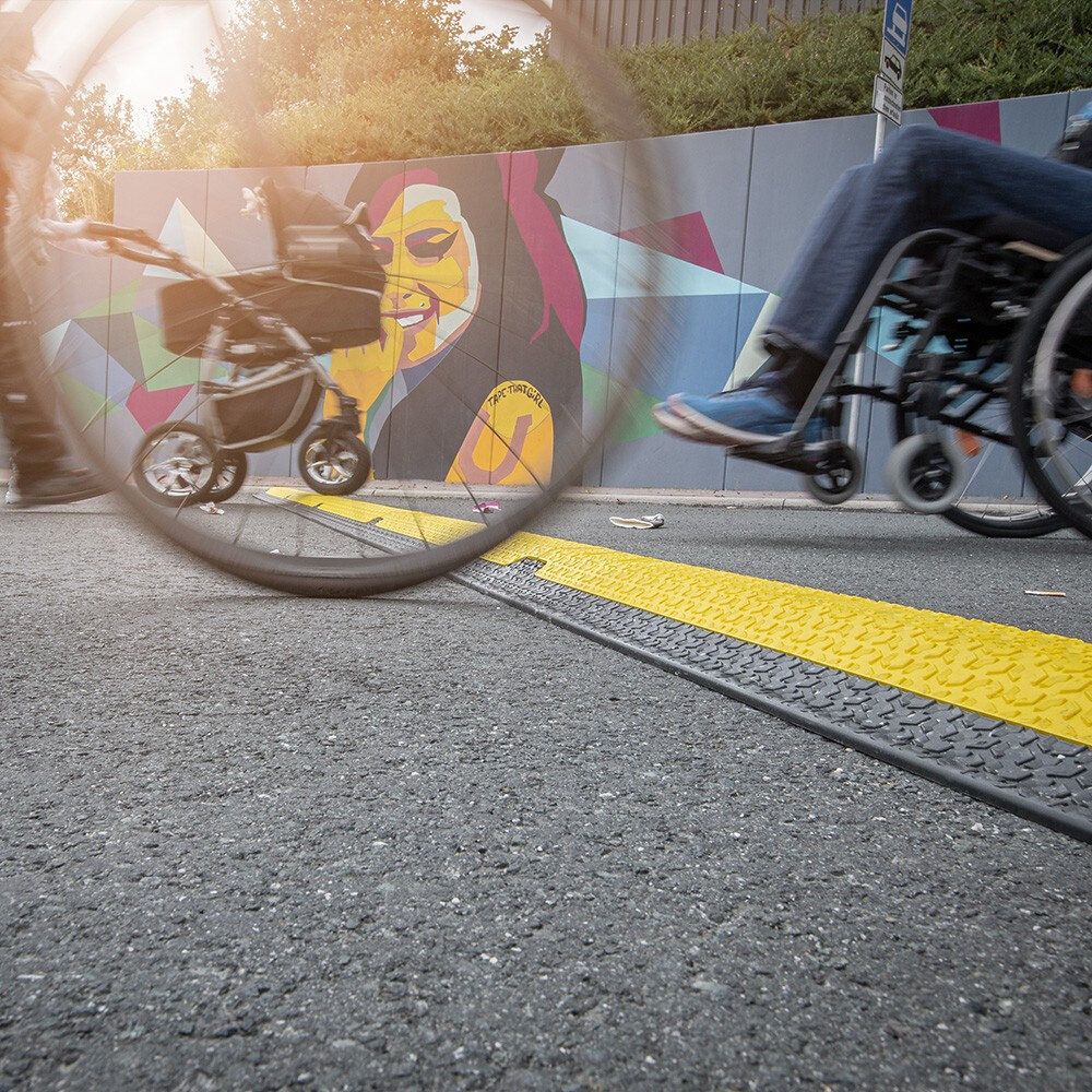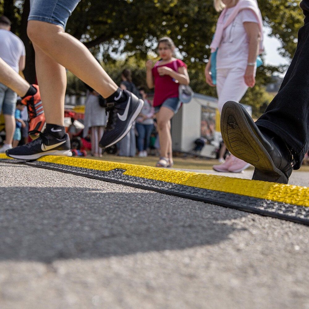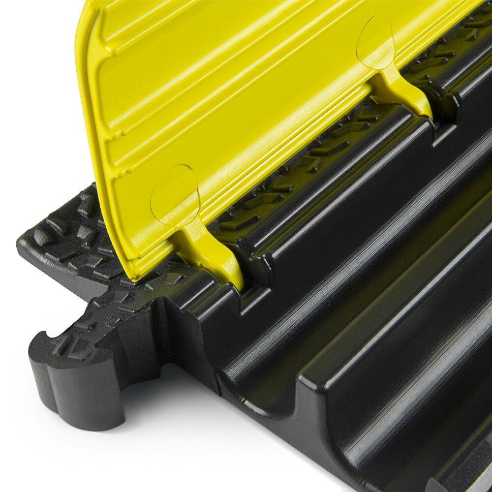 Kabelový most DEFENDER MICRO 2 disponuje žlutým víkem a dvěma kanály pro ochranu kabelů, hadic či trubek na chodnících, ve výrobních provozech, na výstavách, kulturních akcích, v kancelářích apod.
