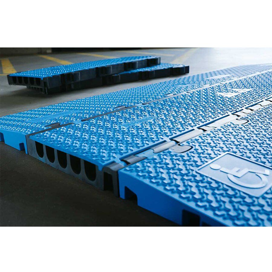 Kabelový most DEFENDER MIDI 2D disponuje modrým víkem a pěti kanály pro ochranu kabelů, hadic či trubek na chodnících, ve výrobních provozech, na výstavách, kulturních akcích, v kancelářích apod. Set zahrnuje prostřední díl a levou i pravou rampu.