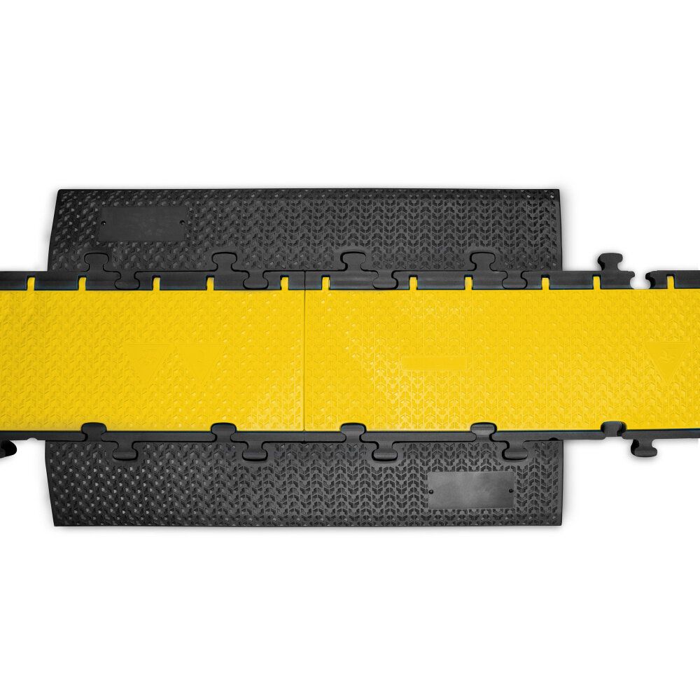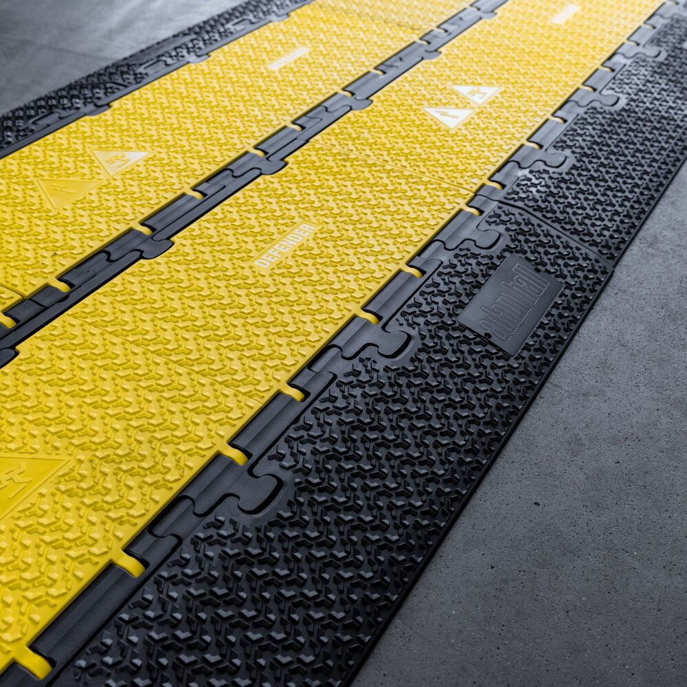 Nájezdová rampa DEFENDER MIDI 5 2D RS disponuje protiskluzovým povrchem pro ochranu kabelů, hadic či trubek na chodnících, ve výrobních provozech, těžkých pracích, na výstavách, kulturních akcích apod.