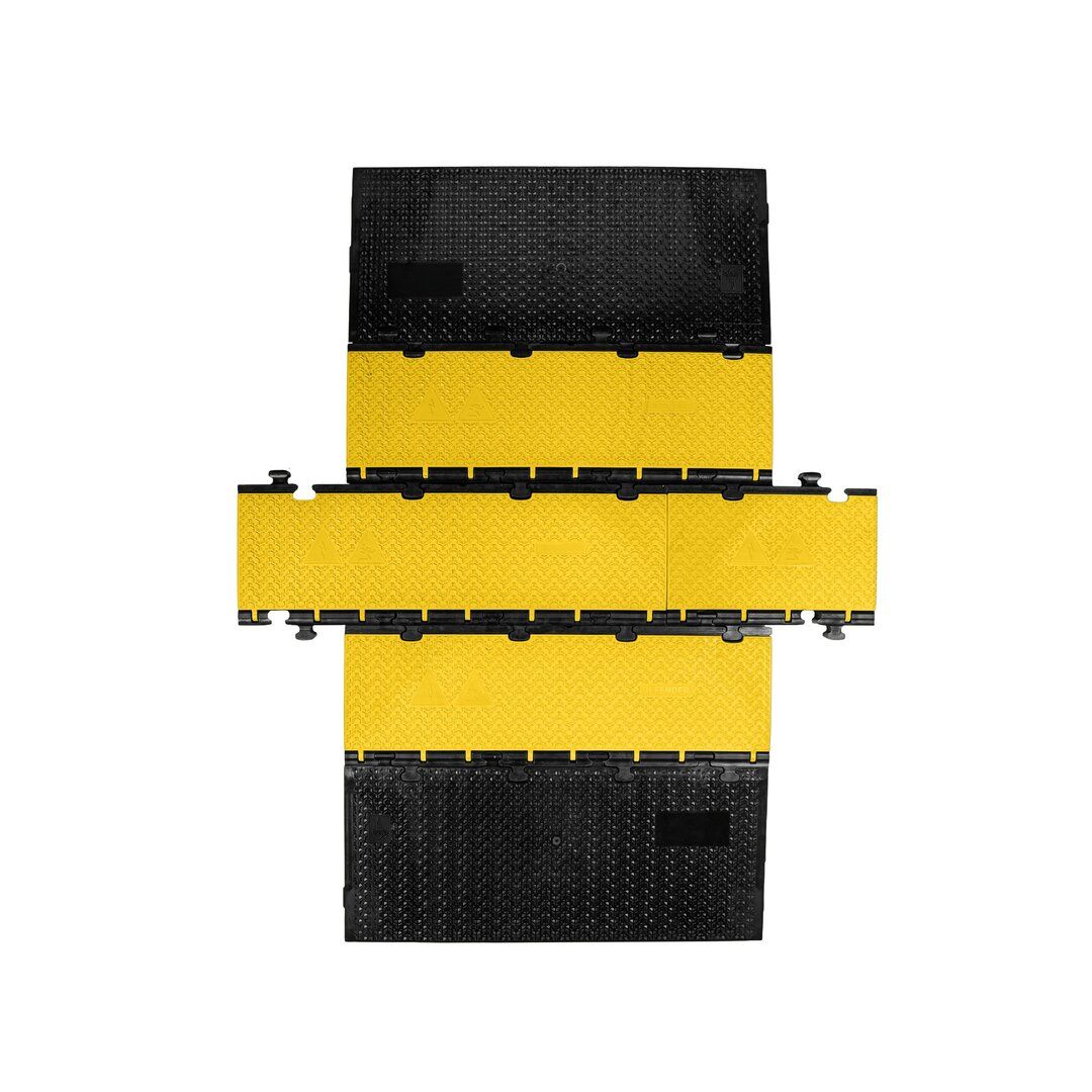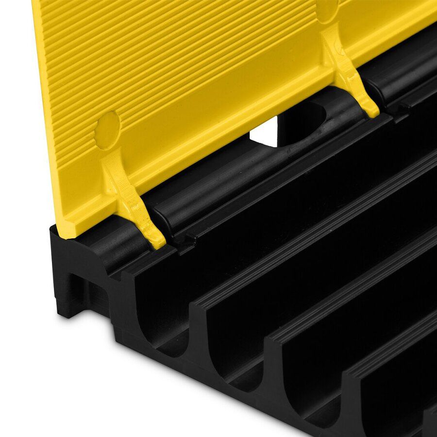 Kabelový most DEFENDER MIDI 2D HV disponuje žlutým víkem a pěti kanály pro ochranu kabelů, hadic či trubek na chodnících, ve výrobních provozech, na výstavách, kulturních akcích, v kancelářích apod.