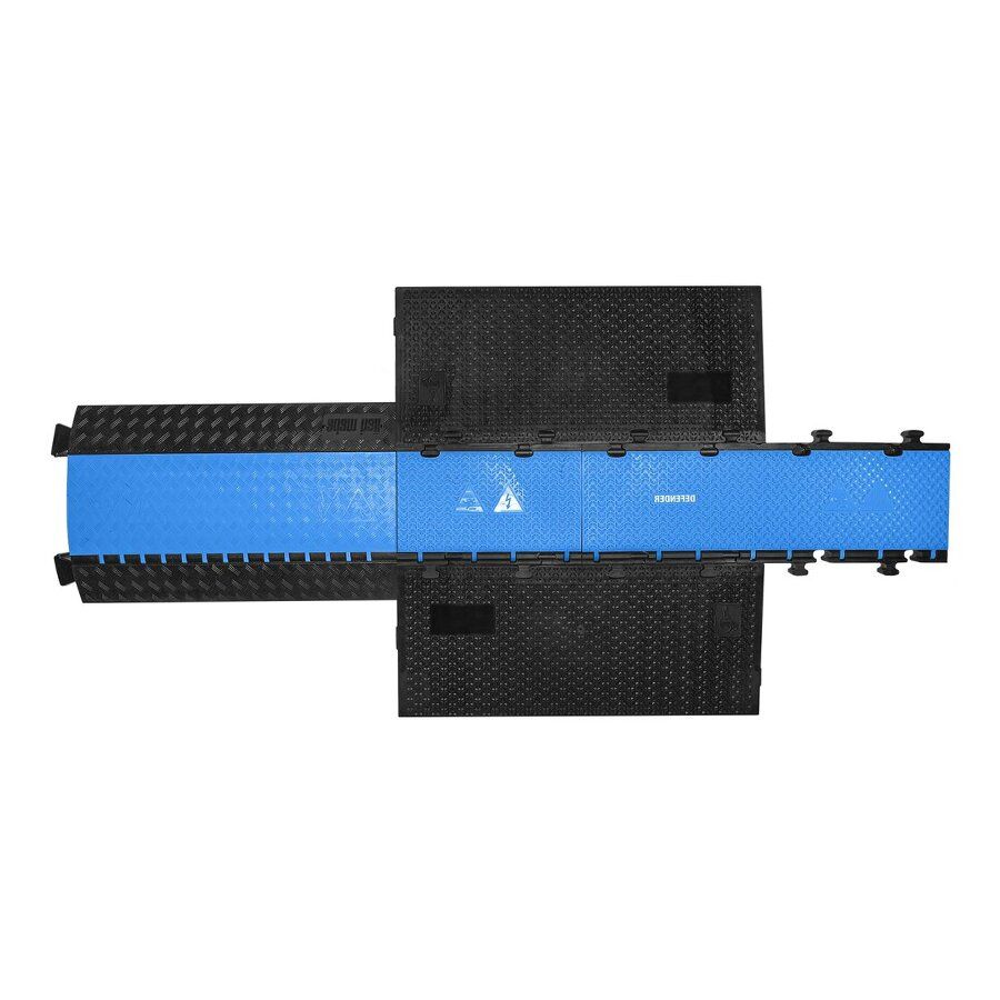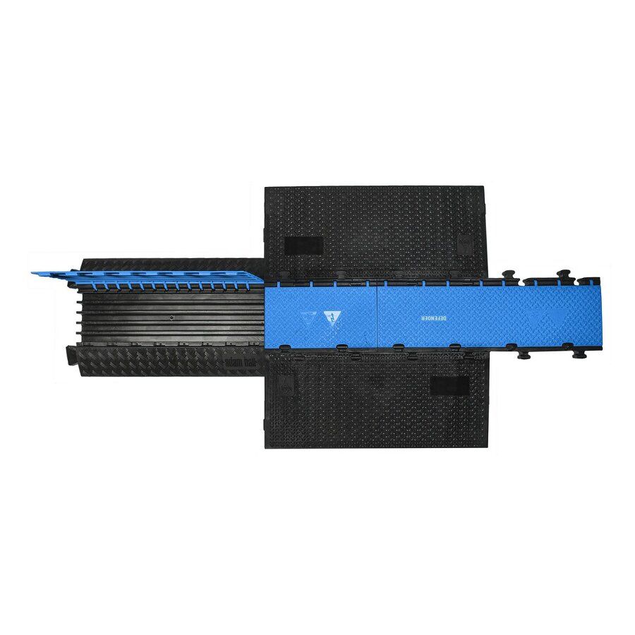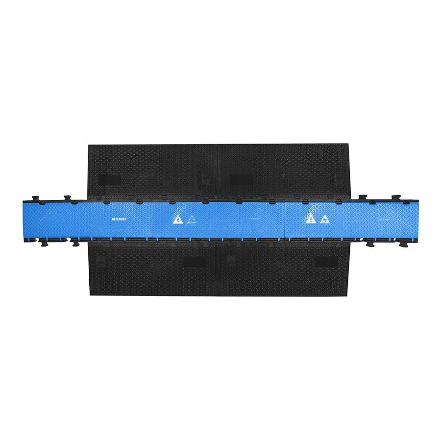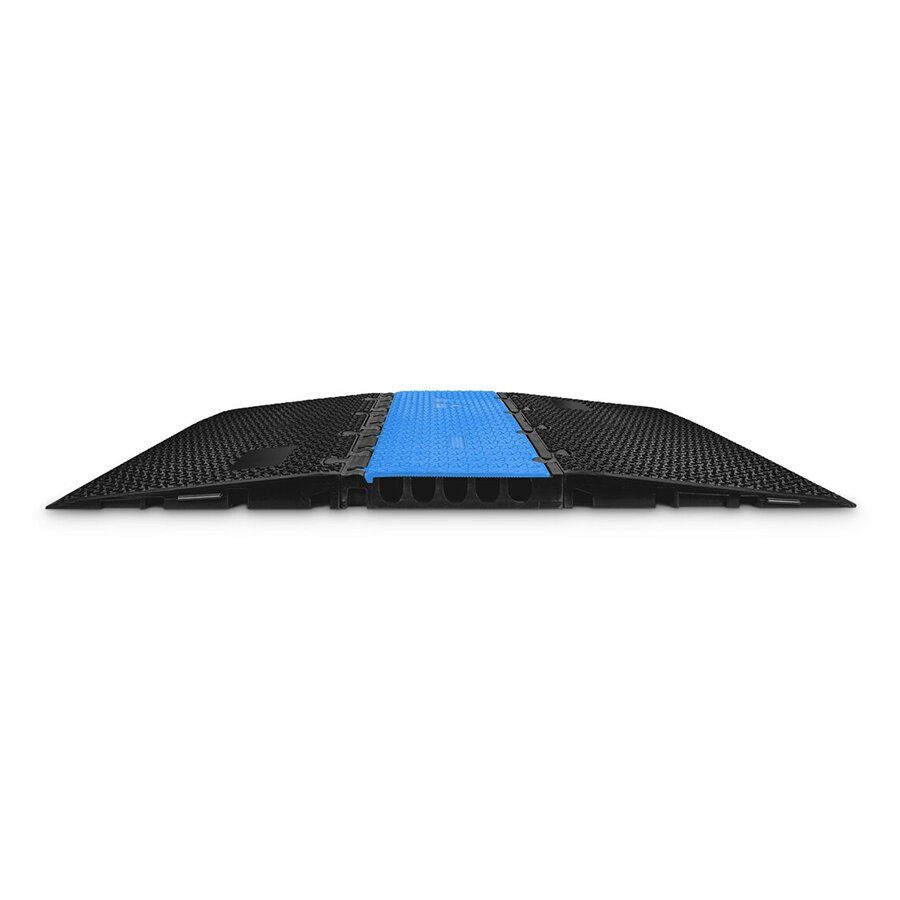 Kabelový most DEFENDER MIDI 2D disponuje modrým víkem a pěti kanály pro ochranu kabelů, hadic či trubek na chodnících, ve výrobních provozech, na výstavách, kulturních akcích, v kancelářích apod.