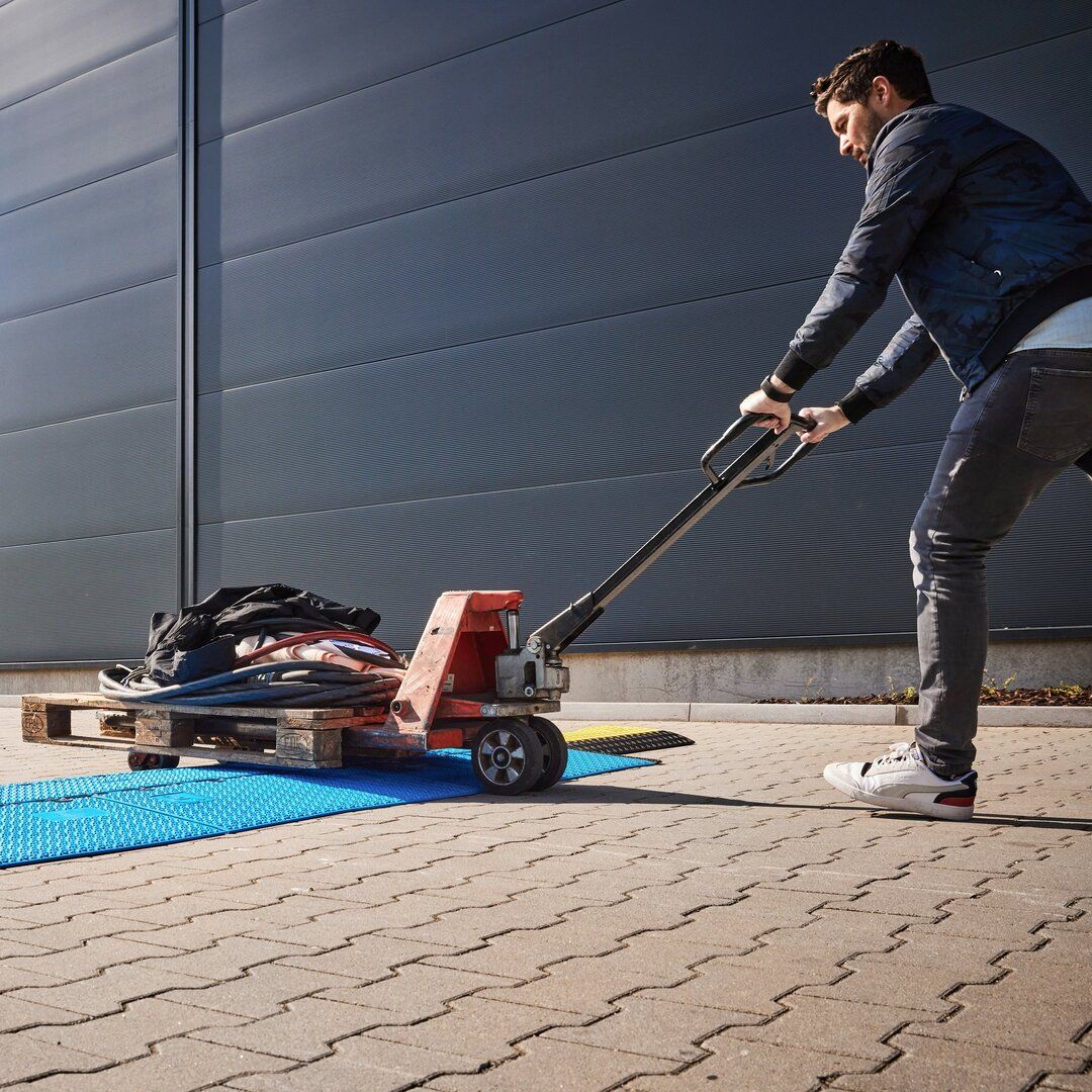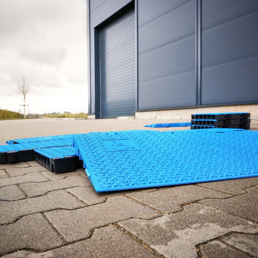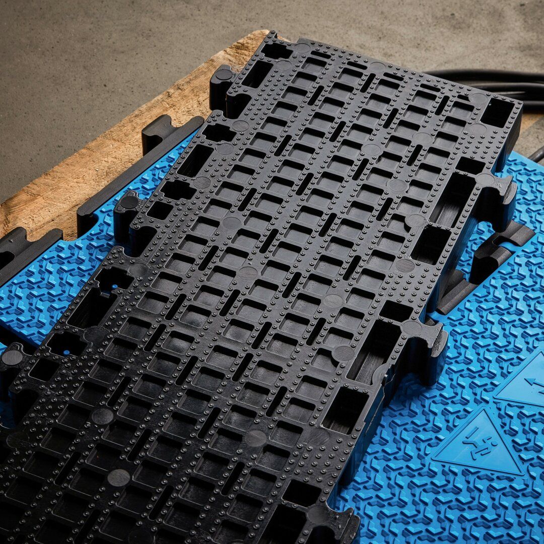 Kabelový most DEFENDER MIDI 2D disponuje modrým víkem a pěti kanály pro ochranu kabelů, hadic či trubek na chodnících, ve výrobních provozech, na výstavách, kulturních akcích, v kancelářích apod.