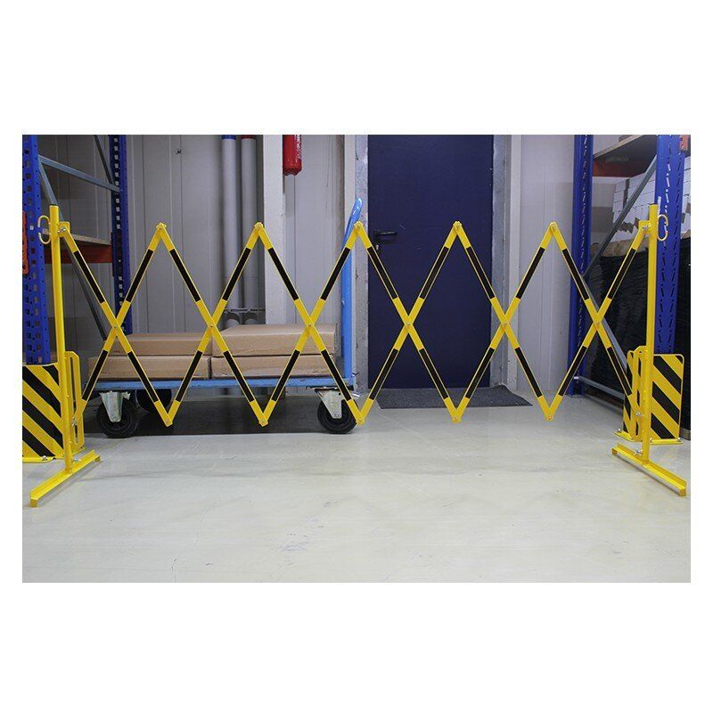 Žluto-černá bariéra k oplocení dočasných zón. Vyrobena z vysoce kvalitní oceli. Bariéry mají stabilní nohy a ploché tyče, které jsou spojeny odolnými nýty. Nůžkové zábrany se snadno přepravují, přemisťují a používají. Označují uzavřené zóny, mimo provoz nebo s omezeným přístupem. Vlastní reflexní fólii.