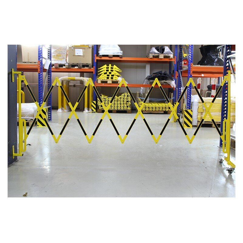Černo-žlutá nástěnná bariéra. Vyrobena z vysoce kvalitní oceli. Zábrany se připevňují ke stěně pomocí příslušných držáků na konci jednoho ze sloupků. Druhá část zábrany je vybavena kolečky pro usnadnění jejího rozkládání a skládání. V nabídce jsou bíle a červeně lakované ocelové zábrany (označené z obou stran reflexní fólií) nebo žluté a černé.