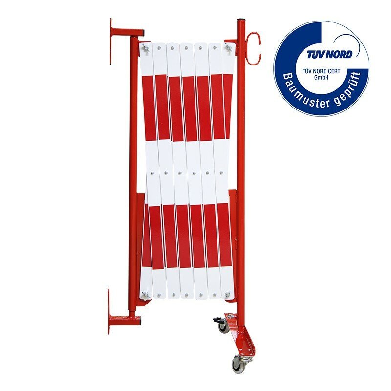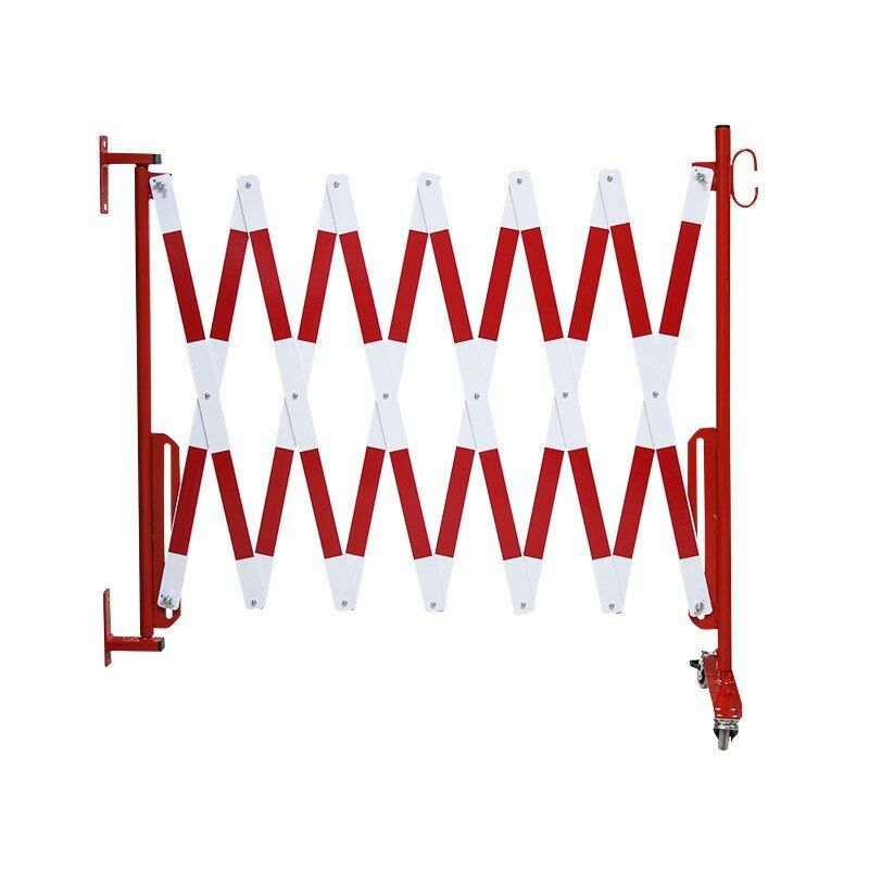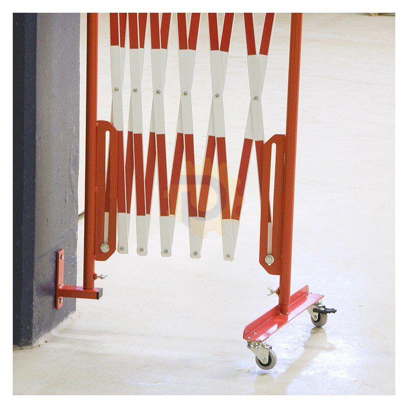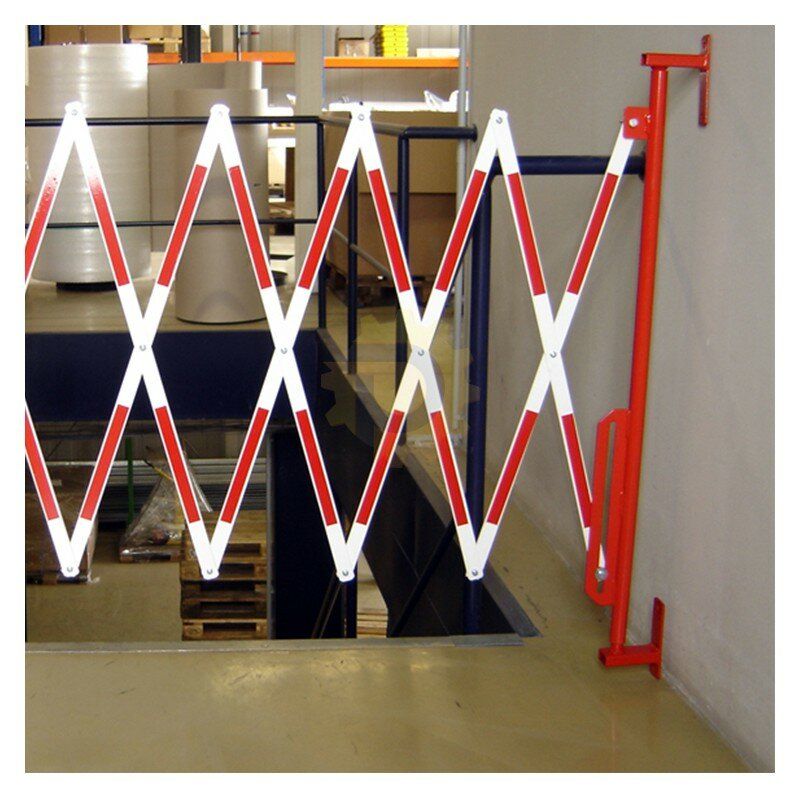 Bílo-červená nástěnná bariéra. Vyrobena z vysoce kvalitní oceli. Zábrany se připevňují ke stěně pomocí příslušných držáků na konci jednoho ze sloupků. Druhá část zábrany je vybavena kolečky pro usnadnění jejího rozkládání a skládání. V nabídce jsou bíle a červeně lakované ocelové zábrany (označené z obou stran reflexní fólií) nebo žluté a černé.