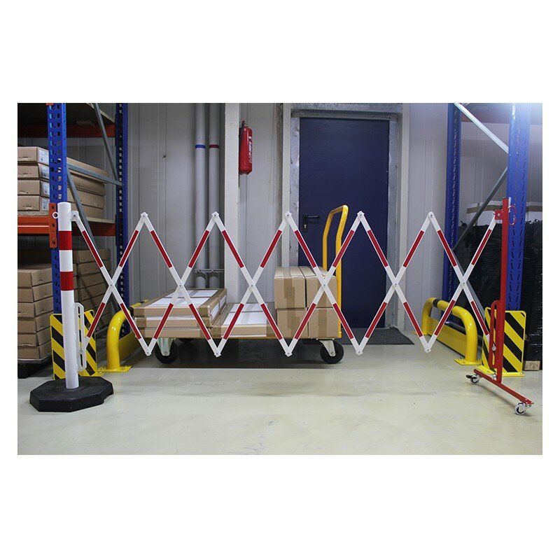 Bílo-červená sloupková přenosná mobilní zábrana je vyrobena z vysoce kvalitní oceli. Skládací zábrana je vybavena pojízdným sloupkem s kolečky. V nabídce jsou bíle a červeně lakované ocelové zábrany (označené z obou stran reflexní fólií) nebo žluté a černé.
