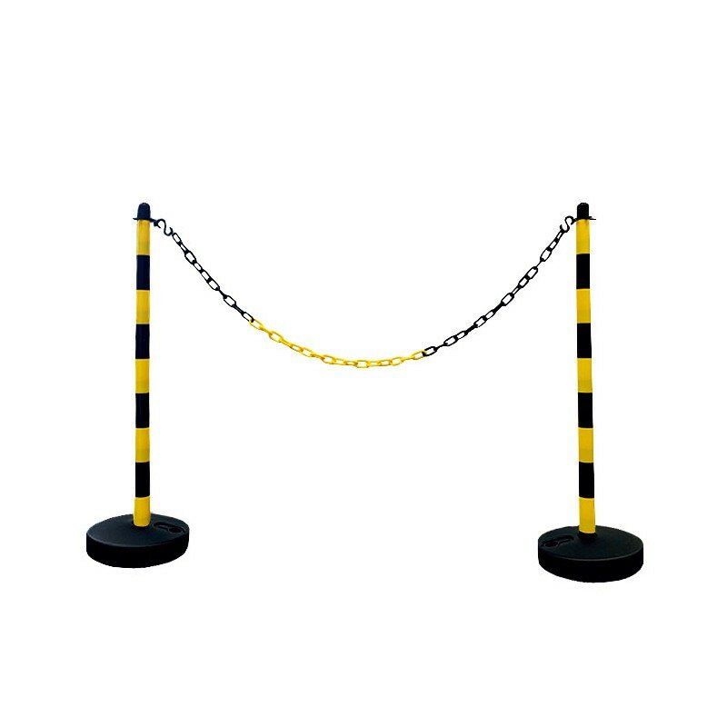 Černo-žlutý plastový vymezovací sloupek s podstavou na výplň. Aby byla zachována odolnost a stabilita systému oplocení, měly by být jejich základy doplněny vodou nebo pískem. Snadno se přenášejí a přepravují. V nabídce jsou bílo-červené nebo žluto-černé. Plastový řetízek se na čepici připevňuje odříznutím posledního článku (zářez umožňuje provlečení segmentu řetízku uzavřeným okem čepice) nebo dodatečně pomocí spojky "S". Sloupy mají stabilní kulaté pryžové základny. Řetěz lze zkrátit na libovolnou délku. Toto balení obsahuje pouze jeden sloupek.