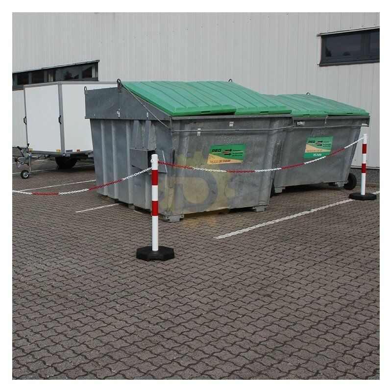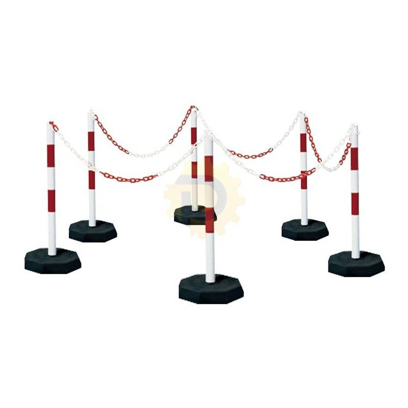 Bílo-červený plastový vymezovací sloupek se zatíženou pryžovou podložkou. Dělicí sloupky se prodávají v sadách: šest kusů ocelových sloupků O60 mm s patkami a pět částí řetězů o celkové délce 25 m (maximální rozteč páru sloupků je 5 m). V nabídce jsou sloupky s řetízkem v bílo-červené nebo žluto-černé barvě. Plastový řetízek se na čepici připevňuje odříznutím posledního článku (zářez umožňuje provlečení segmentu řetízku uzavřeným okem čepice) nebo dodatečně pomocí spojky "S". Oddělovací sloupky umožňují snadno a rychle oddělit dočasné zóny. Řetěz lze zkrátit na libovolnou délku.