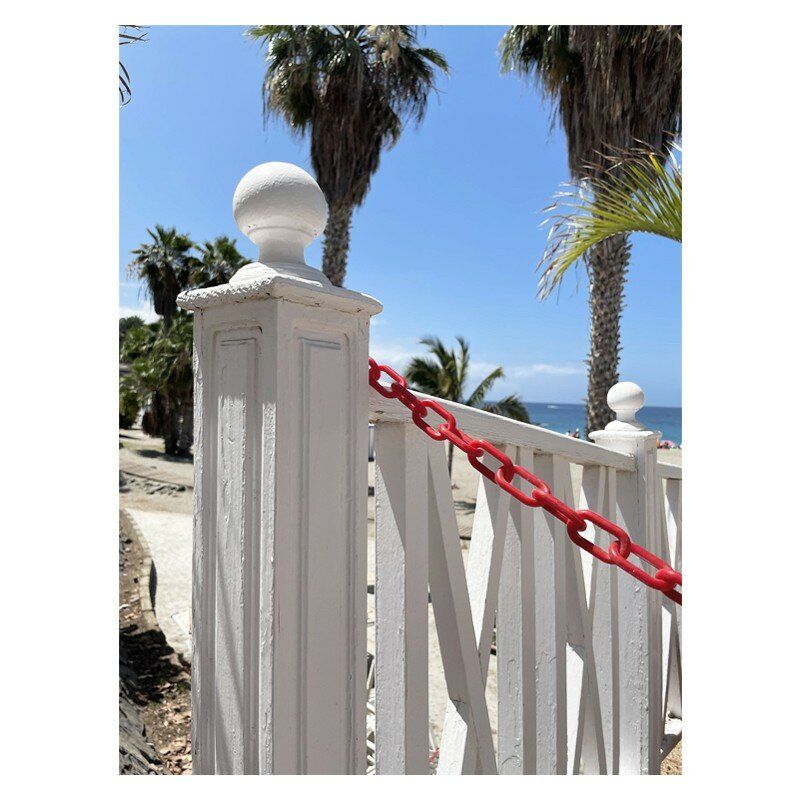 Bílo-červený plastový označovací řetěz pro vymezovací sloupky. Snadno se přenášejí a přepravují. Jde o účinné značení a ochranu výkopů, silničních prací, pracovišť, dočasně uzavřených, oddělených prostor. Bílo-červený řetěz má tloušťku článku: Ø8 mm.