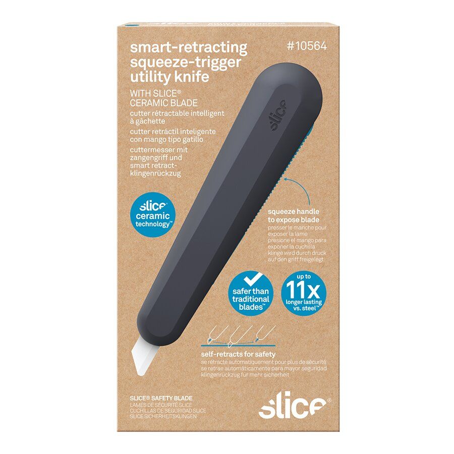 Samo-zatahovací univerzální nůž s páčkou SQUEEZE TRIGGER je nůž navržený pro snadné a bezpečné řezání různých materiálů, jako jsou kartony, folie, pásky nebo igelit. Nůž je vybaven speciálním mechanismem, který umožňuje zatahování čepele zpět do těla nože po uvolnění řezacího tlaku, což minimalizuje riziko úrazu a zlepšuje bezpečnost při používání nože.