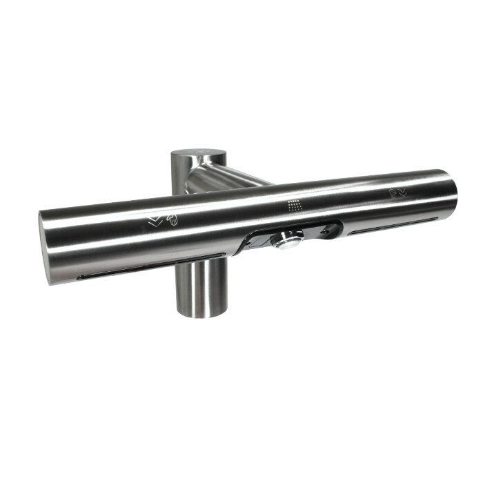 Tělo baterie s vysoušečem ve tvaru písmene T je vyrobeno z kvalitní kartáčované oceli. Jednotka vysoušeče je bezpečně ukryta pod umyvadlem, mimo dosah případných vandalů. Vysoušeč tak zároveň zbytečně nezabírá místo.