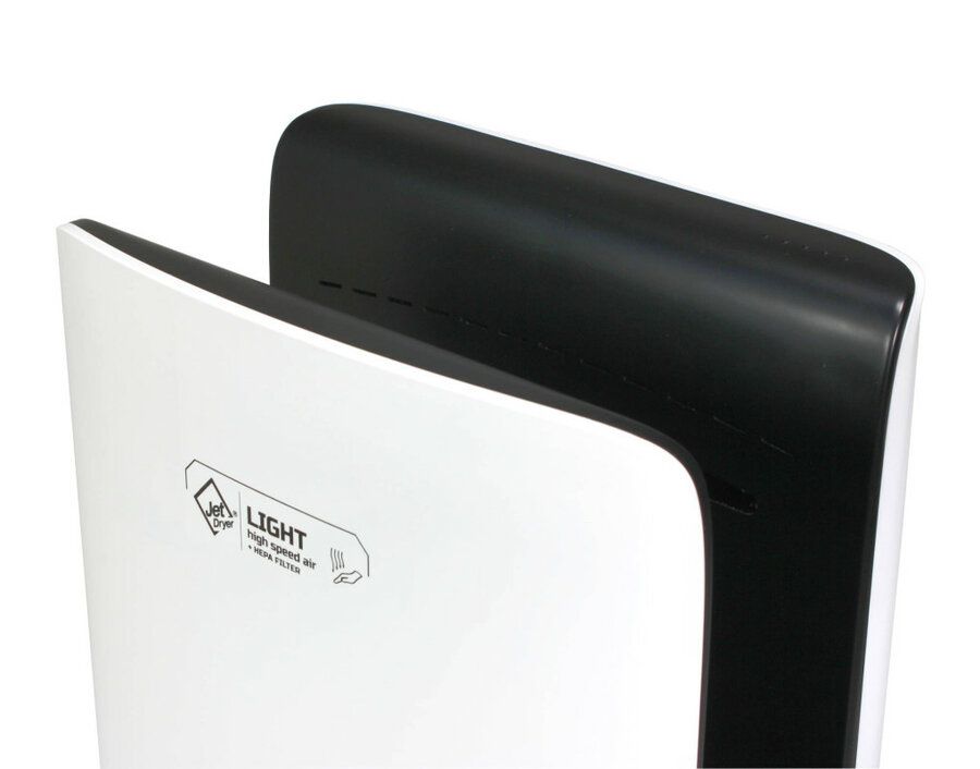 LIGHT je jedním z nejmenších tryskových vysoušečů z řady Jet Dryer. Výška přístroje je pouhých 55,6 cm, šířka 29,6 cm. Vysoušeč je vhodný především do malých koupelen.
