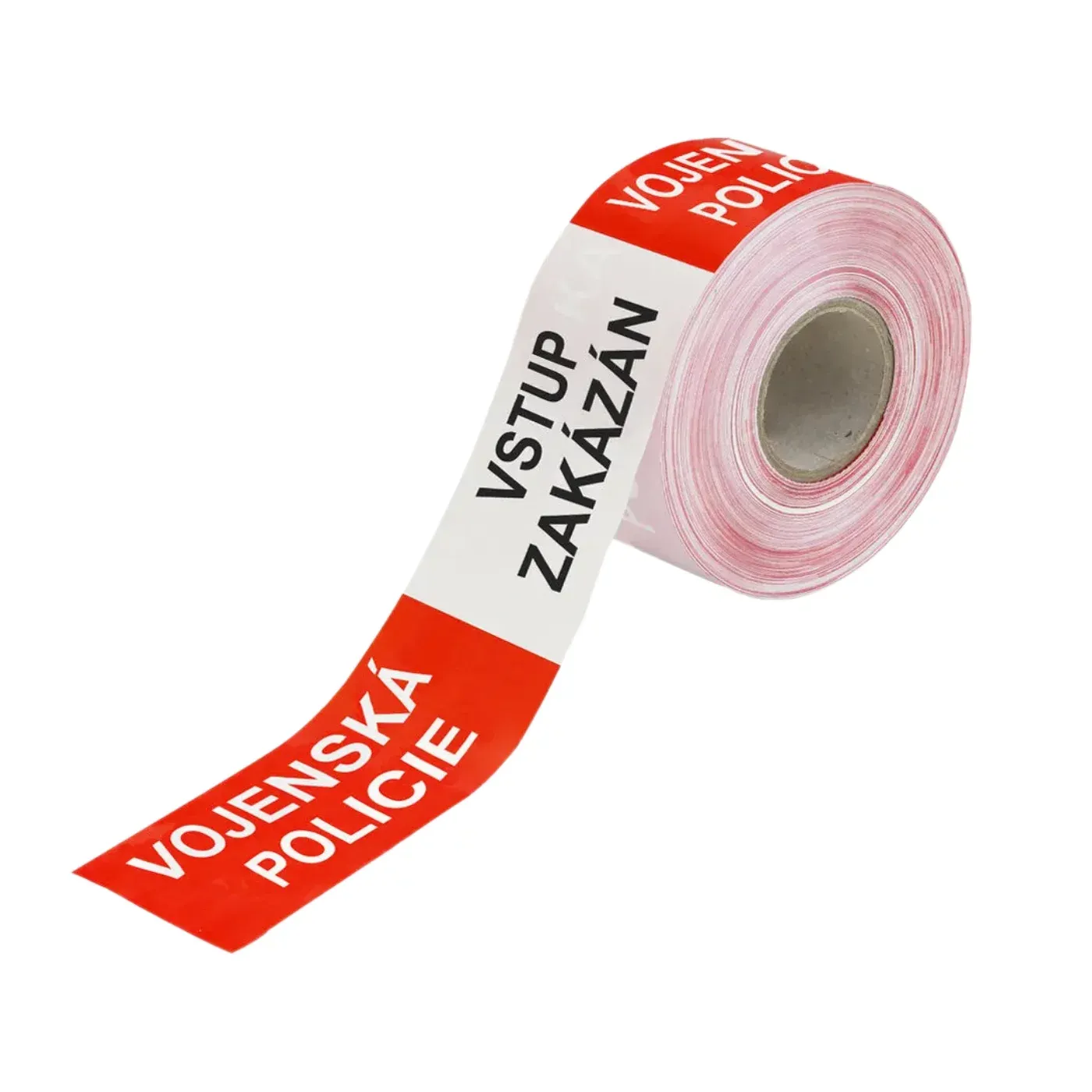Červeno-bílá vytyčovací páska VOJENSKÁ POLICIE - VSTUP ZAKÁZÁN - 500 m x 7,5 cm