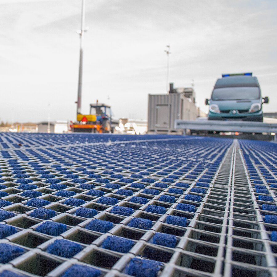Systém obsahuje sadu roštů uspořádaných vedle sebe, vytvářejících čisticí zónu. Tato sada roštů je flexibilní a přizpůsobitelná různým potřebám. Může být uzpůsobena zatížení, typu nečistot, umístění a druhu vozidel, což zajišťuje optimální výkon čištění. Systém je vhodný pro instalaci jak uvnitř, tak vně výrobních a logistických prostor. Jeho robustní konstrukce a odolný materiál zajišťují dlouhou životnost i v náročných podmínkách.