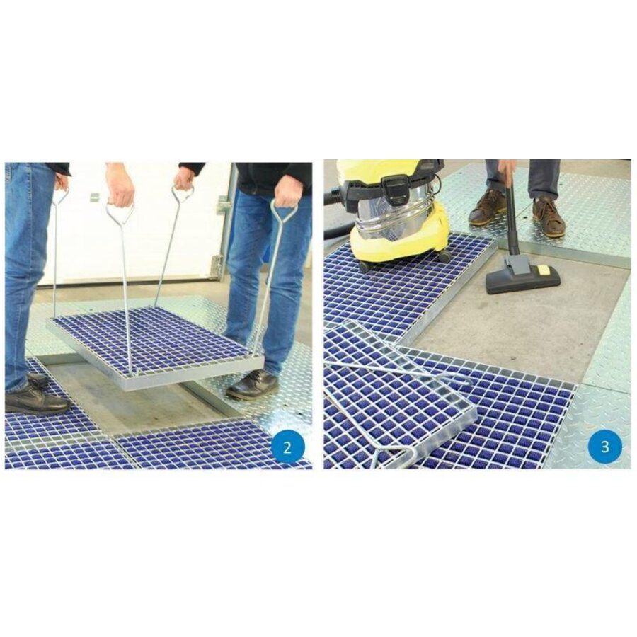 Háky pro kartáčové vstupní rohože FLT-PRM, FLT-ECO jsou navrženy tak, aby usnadňovali proces výměny nebo čištění čistících kartáčků a mechanismů pod nimi. Hák zajišťuje bezpečnou fixaci čistících kartáčků nebo mechanismů během výměny nebo čištění, což minimalizuje riziko úrazů nebo nesprávné manipulace. Díky rychlému uvolnění a uchycení háků se zkracuje doba potřebná na údržbu či výměnu čistících komponentů.