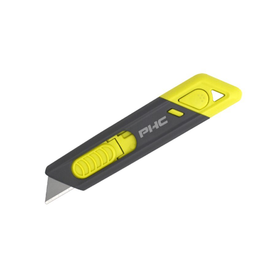 Bezpečnostní nůž s automatickým zatahováním čepele je tenký, vysoce odolný a všestranný, vybavený 2 uzamčenými možnostmi hloubky řezu pro větší bezpečnost a kontrolované řezání v maloobchodních, výrobních a skladových prostředích.