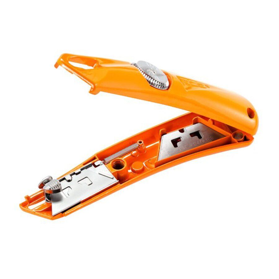 Kompaktní bezpečnostní nůž kombinuje odolnost průmyslového nože s bezpečnostními výhodami samo-zatahovacího nože. Aby se předešlo bolestivým a nákladným zraněním, čepel se po dokončení řezu vrátí zpět. S menší hloubkou čepele je menší pravděpodobnost poškození obsahu krabic. Jedinečný design integrovaného pantu a snadno otevíratelný kryt umožňují pohodlnou výměnu čepele bez použití nářadí. Navíc je ocelová konstrukce extrémně odolná.
