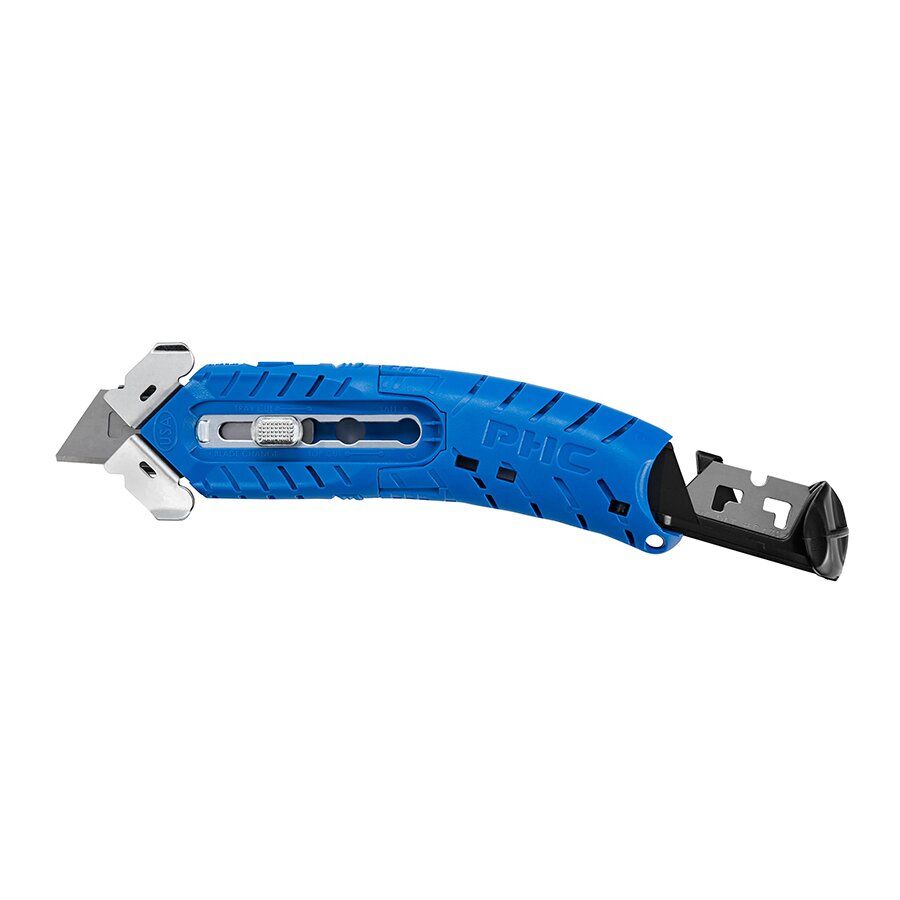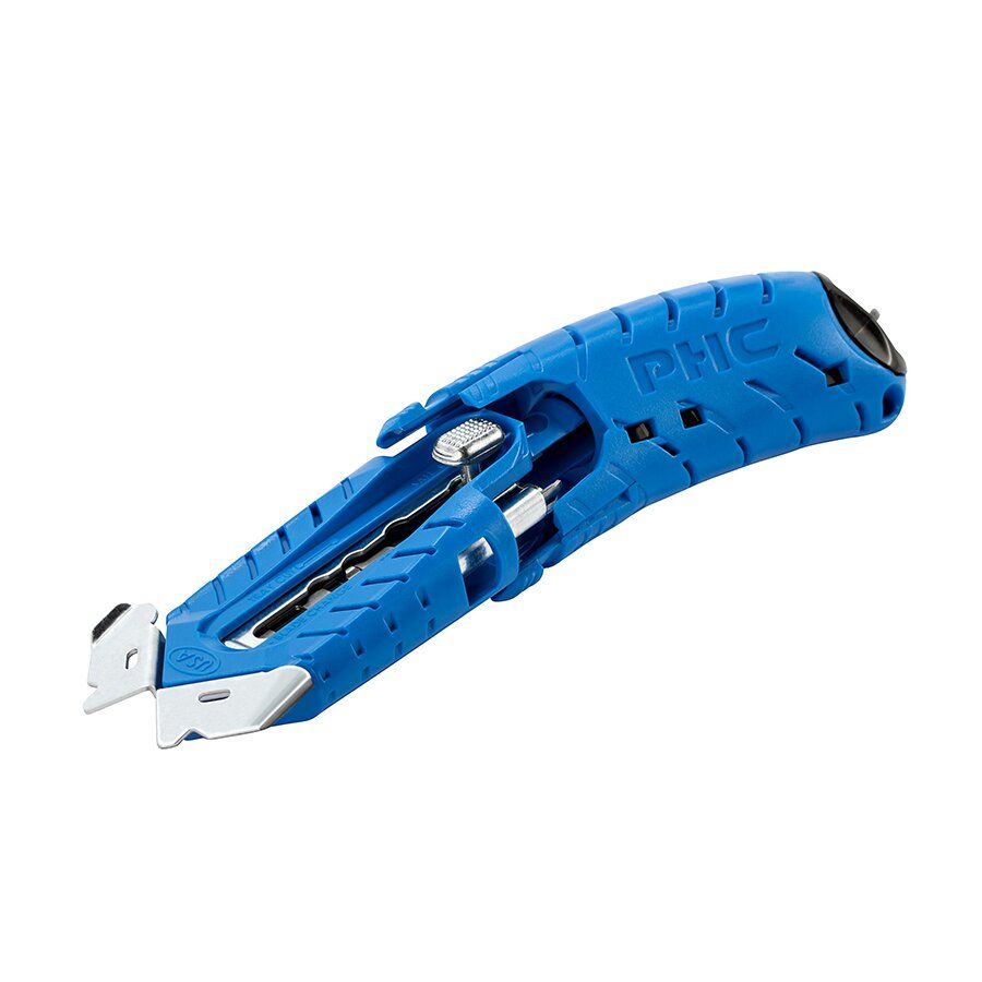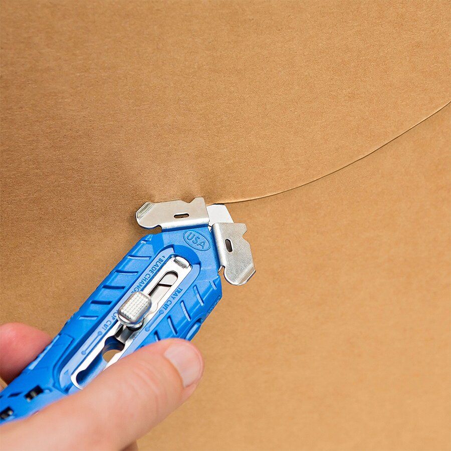 Jedinečný úhel čepele je nastaven speciálně tak, aby nedošlo k poškození obsahu v krabici. Navíc tento adaptabilní bezpečnostní nůž má tři polohy hloubky čepele pro zvýšení účinnosti; horní řez, mělký řez podnosem a hluboký řez. Použití rozřezávače folie zabraňuje zranění a prodlužuje životnost čepelí.