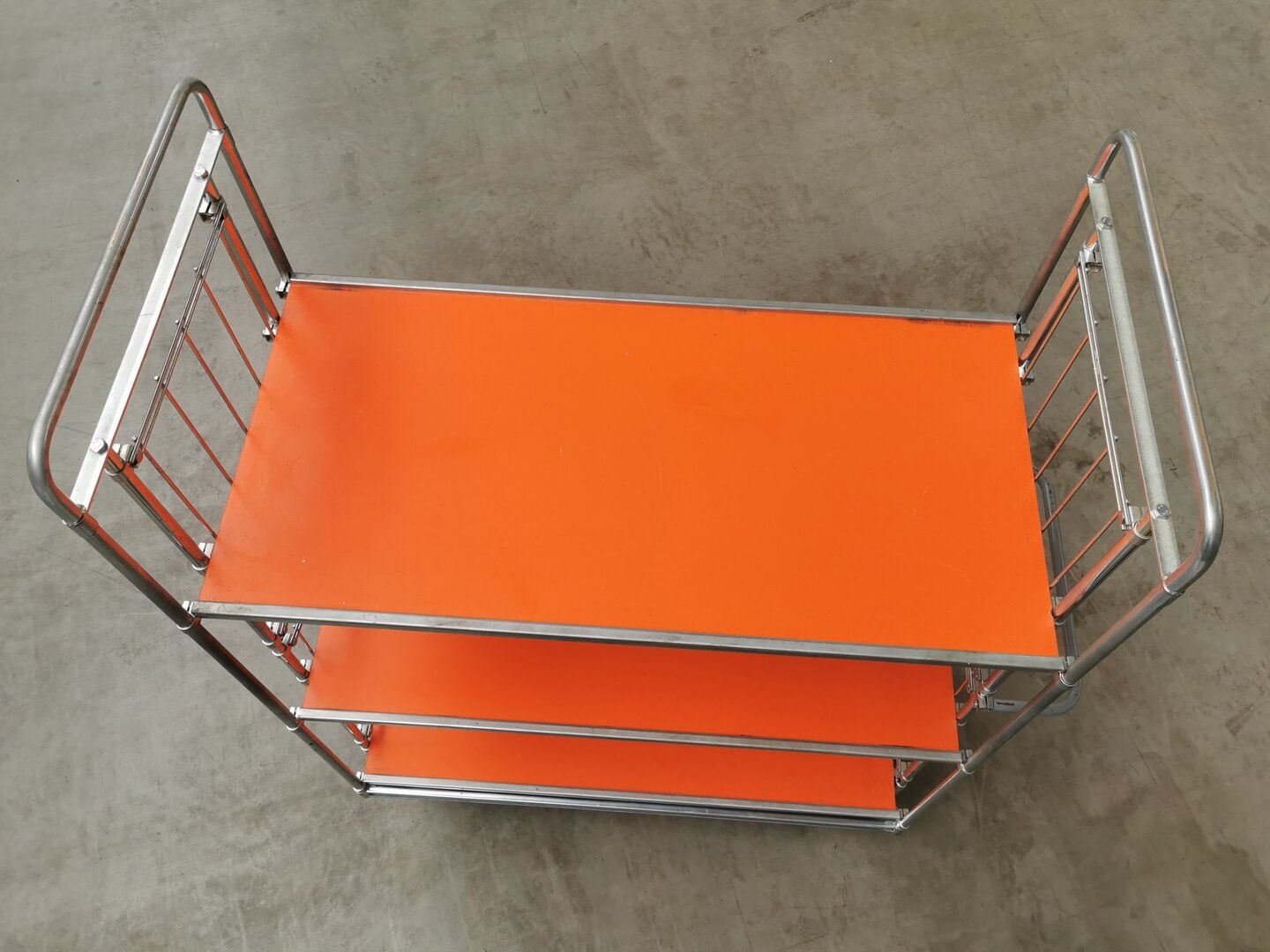 Tento skladový vozík má tři dřevěné police o vysoké nosnosti (150-200 kg / police), které poskytují dostatek místa pro manipulaci velkým s počtem zboží najednou. Police lze jednoduše výškově posouvat, tedy lze vozík přizpůsobit různě vysokému zboží.