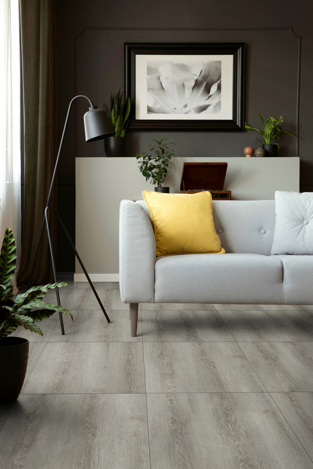 Šedá PVC vinylová dlažba Fortelock Business Viken steam smoke C005 graphite - 66,8 x 66,8