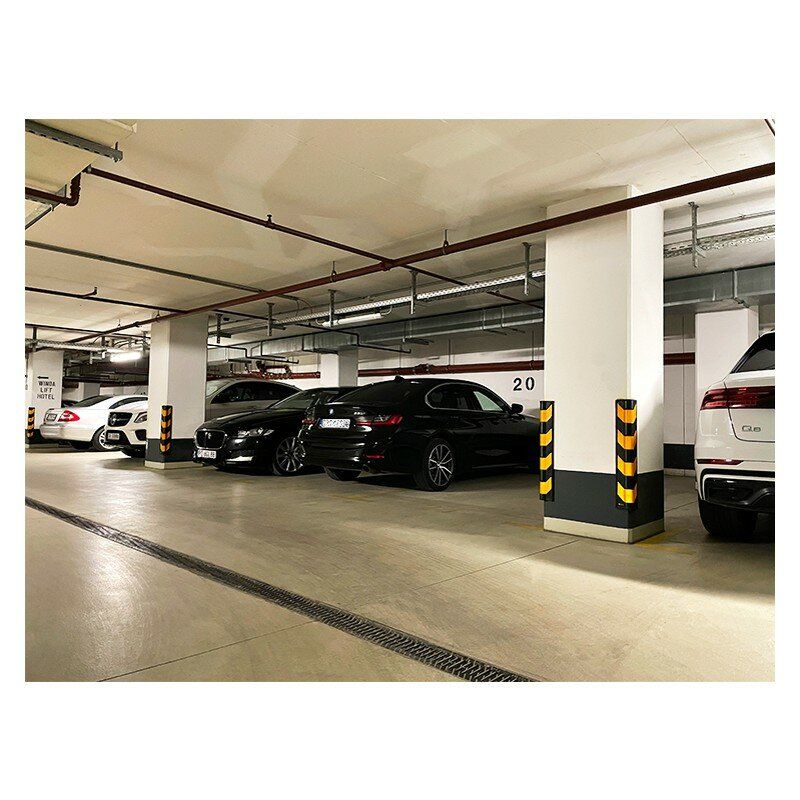 Černo-žlutý gumový reflexní roh se zaobleným profilem je určen pro ochranu rohů v garážích, skladech či v průmyslových a výrobních halách. Ochranný pás je vyroben z velmi odolného gumového materiálu (tloušťka materiálu 1 cm) s reflexními pruhy o šíři 10cm. Díky použitému materiálu a své velikosti zabraňuje poškrábaní vašeho automobilu. Vhodný pro sklady, parkoviště, garáže, vjezdy a výjezdy. Roh lze připevnit kotvícími šrouby (vruty s hmoždinkami ) nebo na hladké povrchy kontaktním lepidlem. Reflexní pruhy třídy odrazivosti II. výrazně zvyšují viditelnost.