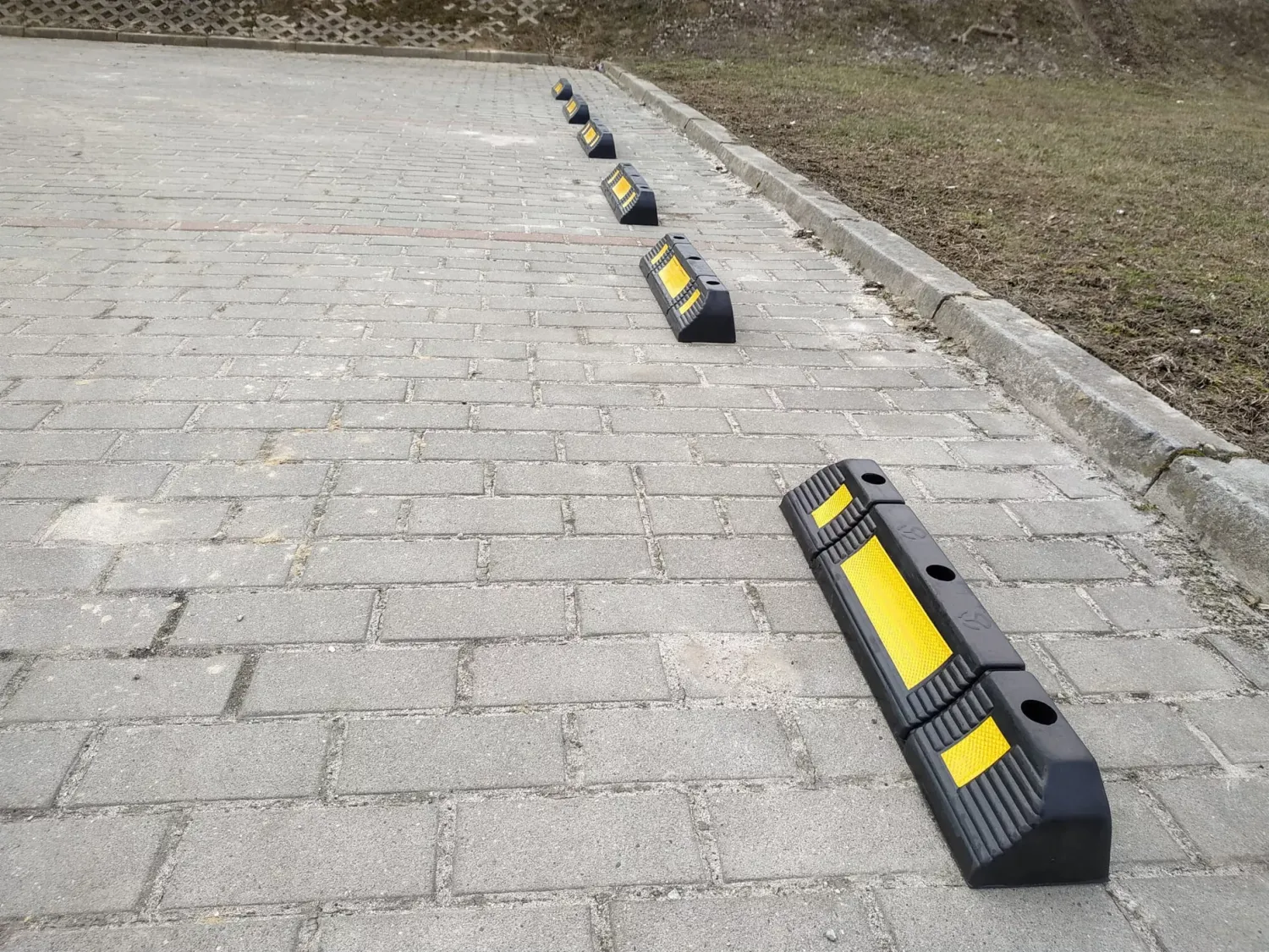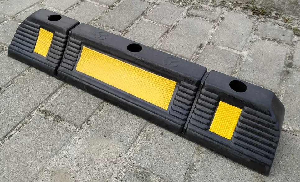 Černo-žluté parkovací dorazy jsou vyrobeny z extrémně odolné, homogenní a trvdé pryžové směsi. Při vystavení nepříznivým povětrnostním podmínkám se materiál nedelaminuje ani nebarví. Tyto dorazy označují hranici parkovacího místa. Jsou opatřeny diagonálními pruhy reflexní páseky.