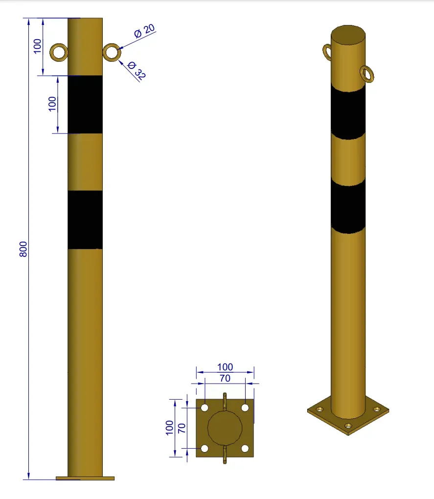 Informace o zboží Černo-žlutý ocelový parkovací sloupek s oky - 6 x 80 cm
