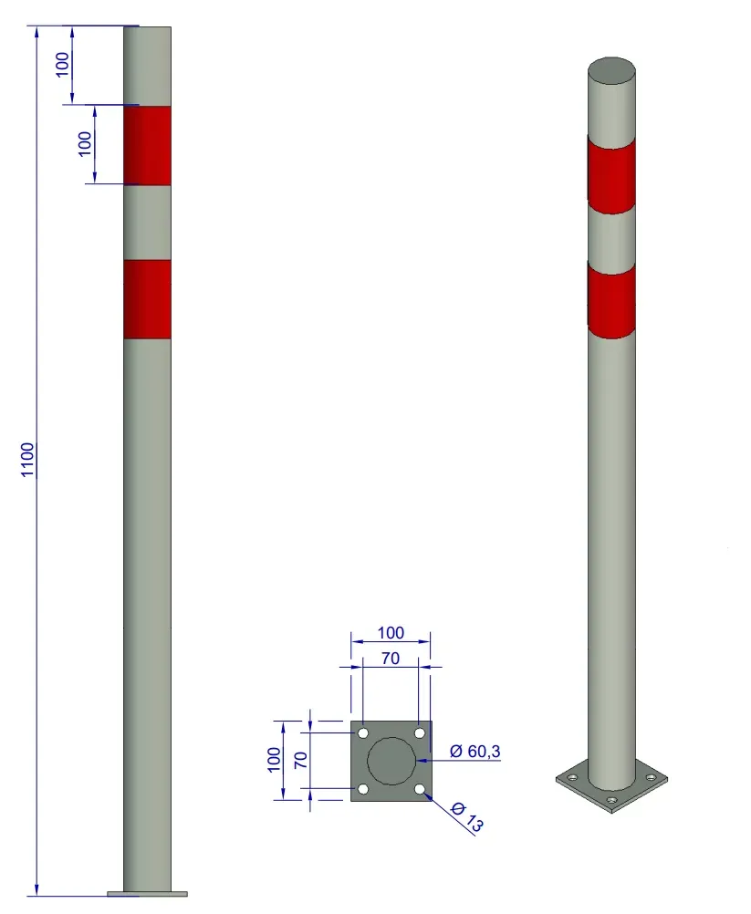 Parkovací ocelový sloupek slouží pro zvýšení bezpečnosti a organizace prostoru na parkovištích, ve skladech, průmyslových areálech nebo v městském prostředí k ochraně chodníků a budov před nárazy vozidel. Díky své reflexní 3D fólii zajišťuje vynikající viditelnost i za zhoršených světelných podmínek nebo v noci.