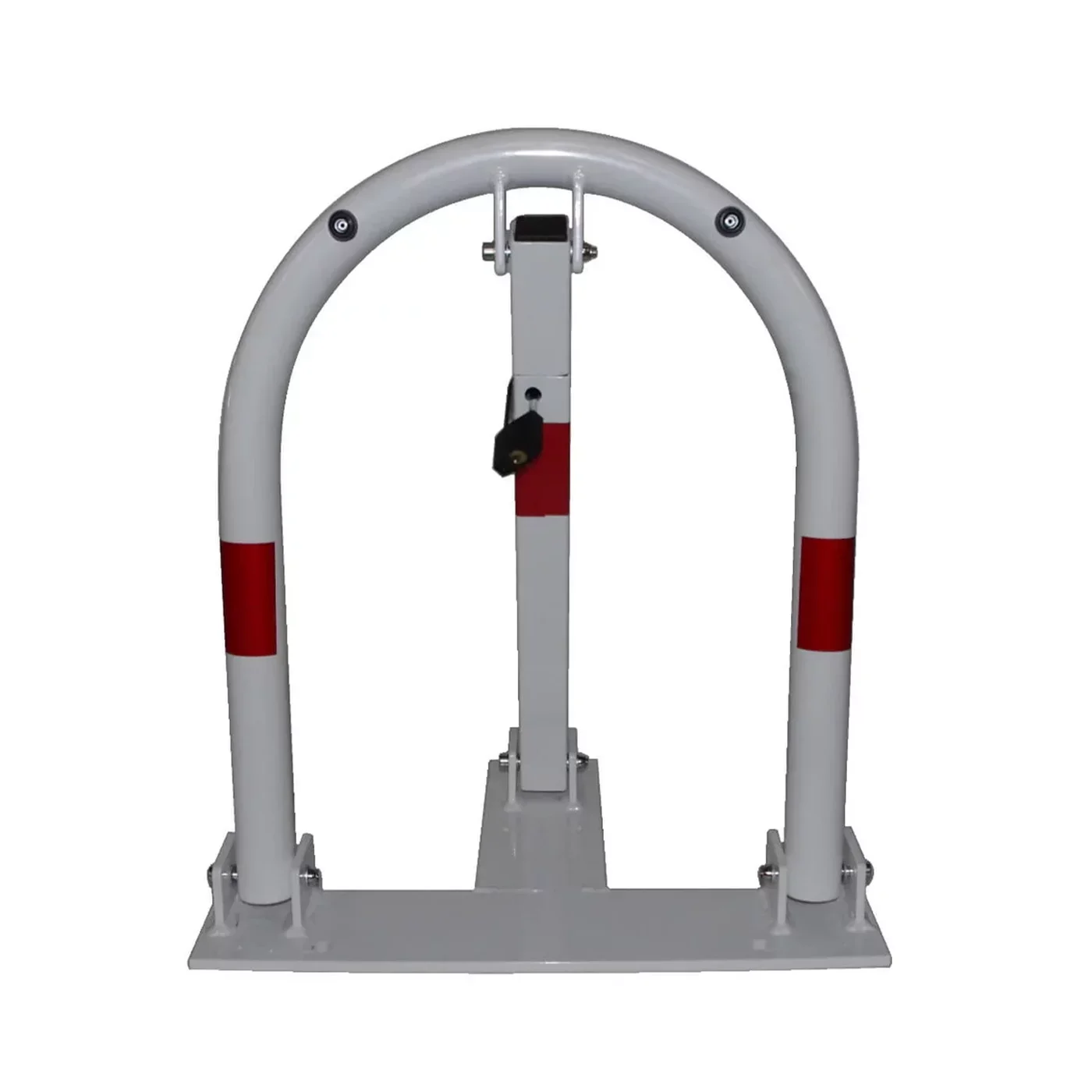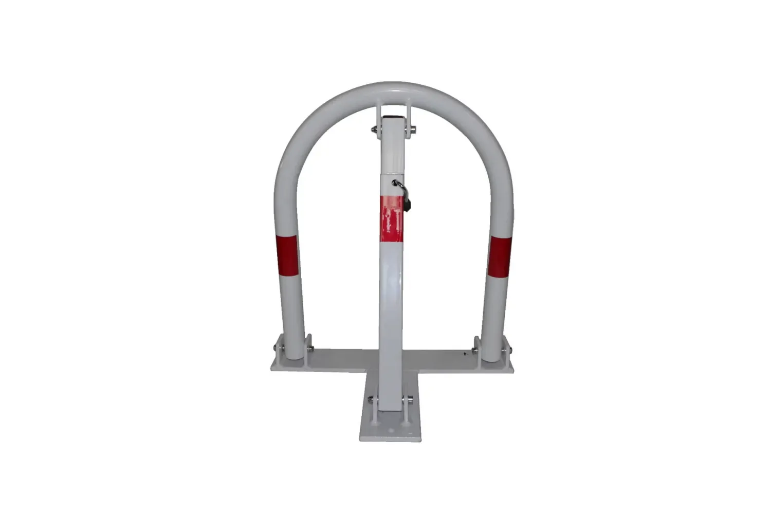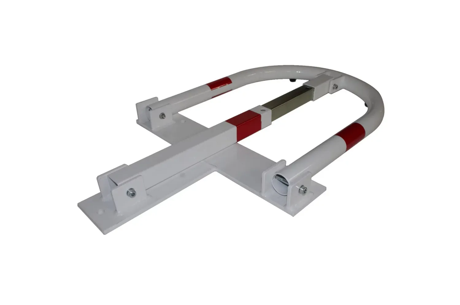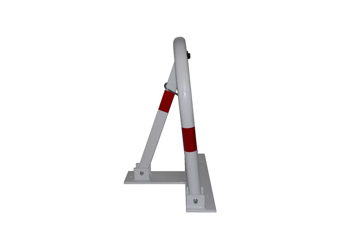 Bílo-červená parkovací zábrana vyrobená z vysoce kvalitní oceli se vyznačuje odolností a masivností. Zábrana má svislý sloupek a profilované, klenuté břevno. Tato zábrana je přáškově lakovaná. Výrobek je viditelný po setmění a za ztížených povětrnostních podmínek. Zábranu je možno zamknout visacím zámkem (zámek je součástí sady).