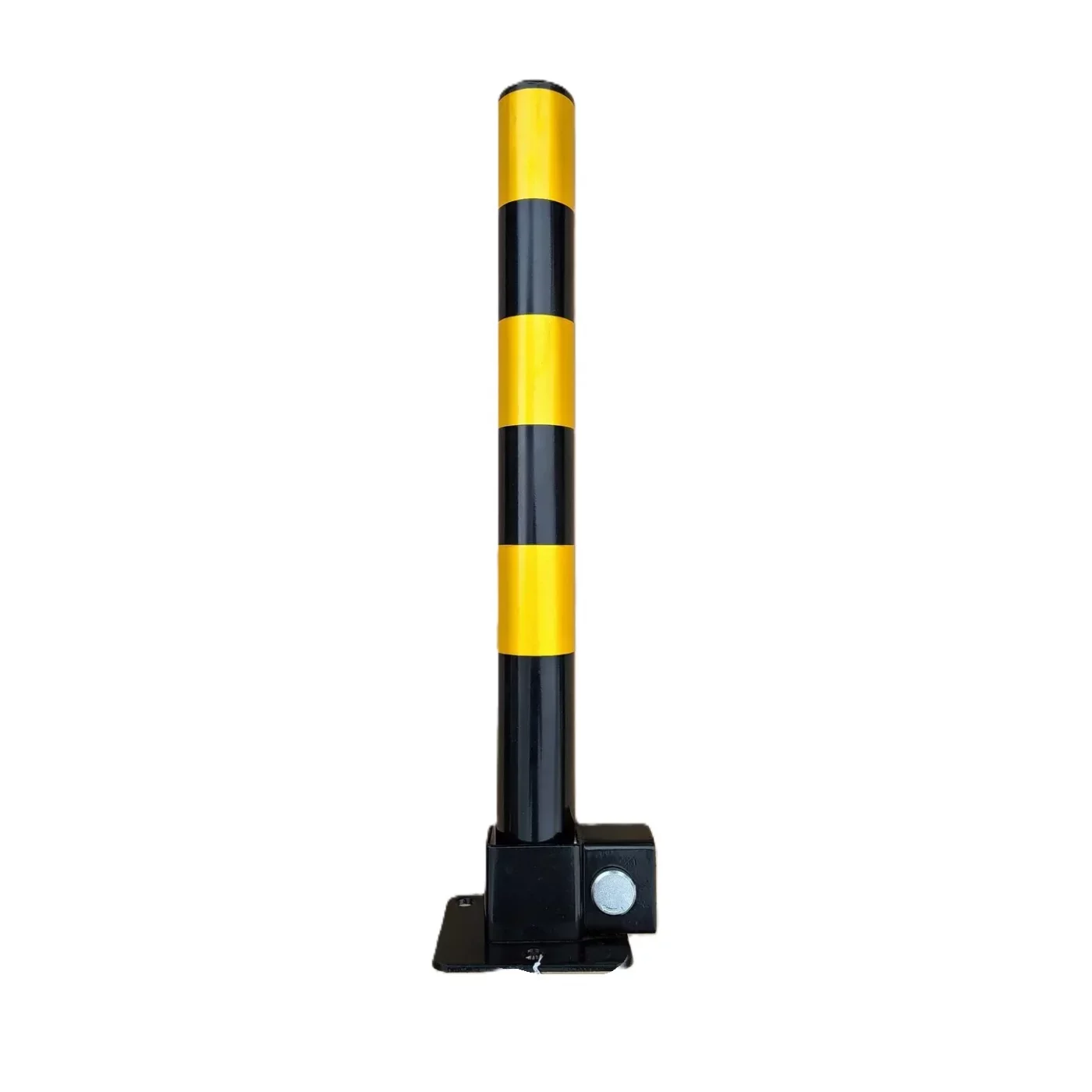 Černo-žlutý ocelový sklopný sloupek je praktickým řešením pro kontrolu přístupu na parkovací místo nebo komunikaci. Je vyroben z kvalitní oceli s povrchovou úpravou zinku a práškového lakování, což zajišťuje jeho dlouhou životnost a odolnost vůči povětrnostním vlivům. Díky reflexním pruhům je dobře viditelný i za zhoršených světelných podmínek.