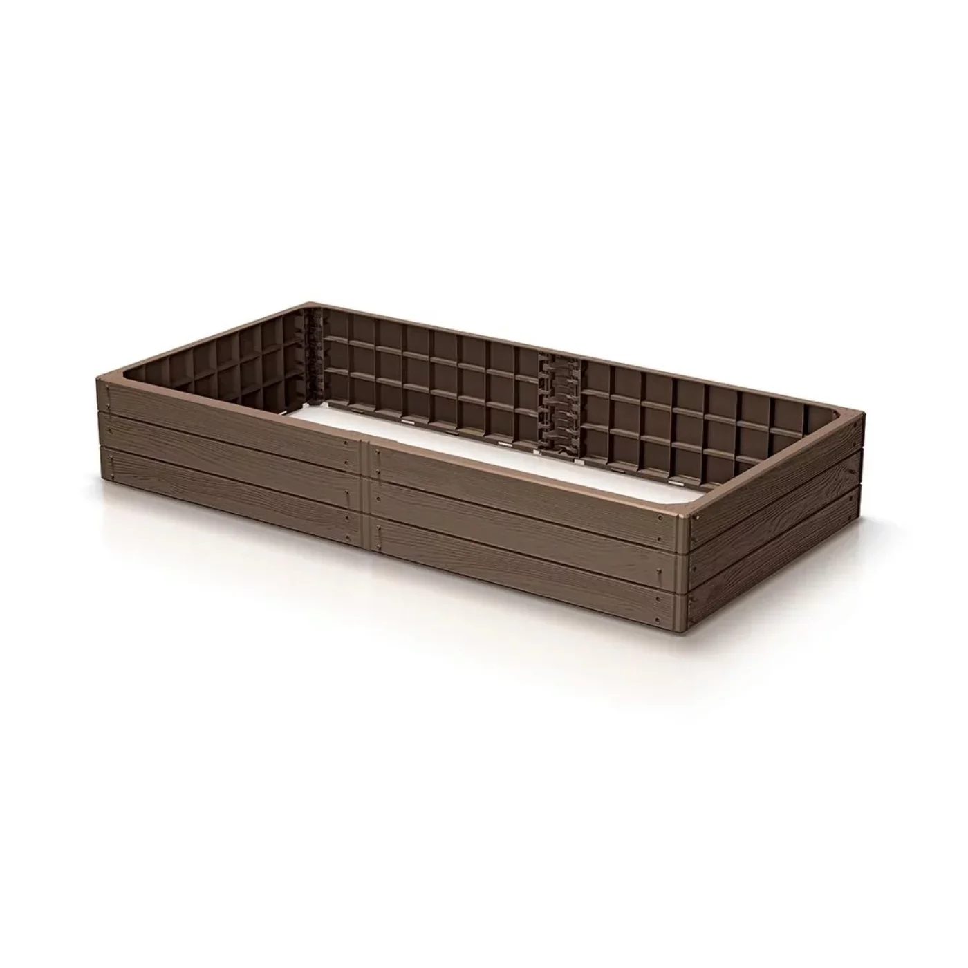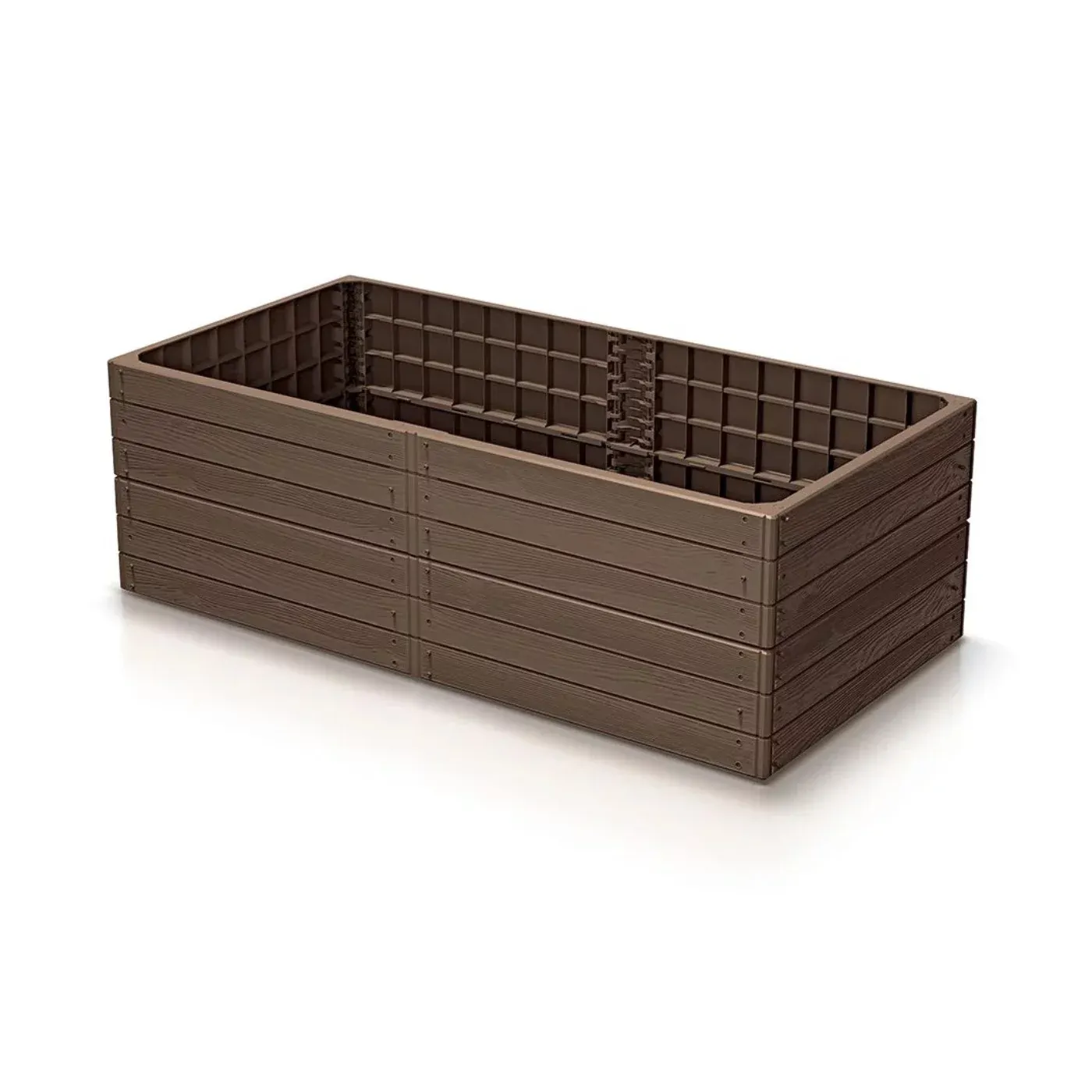 Hnědý vyvýšený stohovatelný zahradní záhon je elegantní a ekologické řešení pro pěstování zeleniny, bylinek či květin. Vyrobený z recyklovaného kompozitního materiálu, který imituje dřevo, nabízí odolnost vůči povětrnostním vlivům bez nutnosti údržby. Ideální pro zahrady, terasy i balkony.