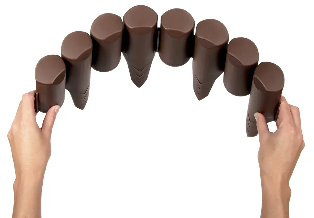 Tento hnědý plastový zahradní obrubník slouží k elegantnímu oddělení trávníků, záhonů, cest nebo jiných ploch. Je oblíbená pro svůj přirozený vzhled připomínající pálenou hlínu a snadnou.