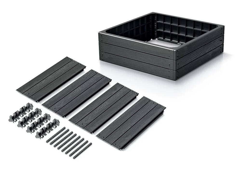 Černý vyvýšený stohovatelný záhon je elegantní a ekologické řešení pro pěstování zeleniny, bylinek či květin. Vyrobený z recyklovaného kompozitního materiálu, který imituje dřevo, nabízí odolnost vůči povětrnostním vlivům bez nutnosti údržby. Ideální pro zahrady, terasy i balkony.
